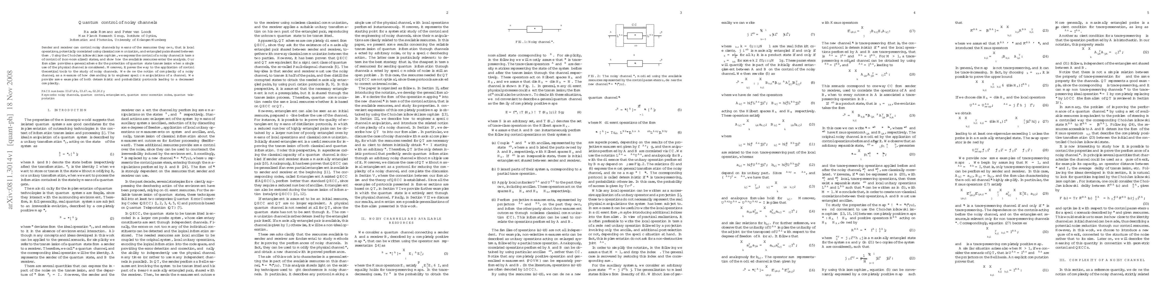 This paper explores quantum control strategies for noisy channels, utilizing local operations, classical communication, and shared entangled pairs. It introduces a formalism based on the Choi-Jamiolkowski isomorphism to analyze the control of noisy channels and proposes a measure of channel complexity, demonstrating protocols that reduce this complexity.
