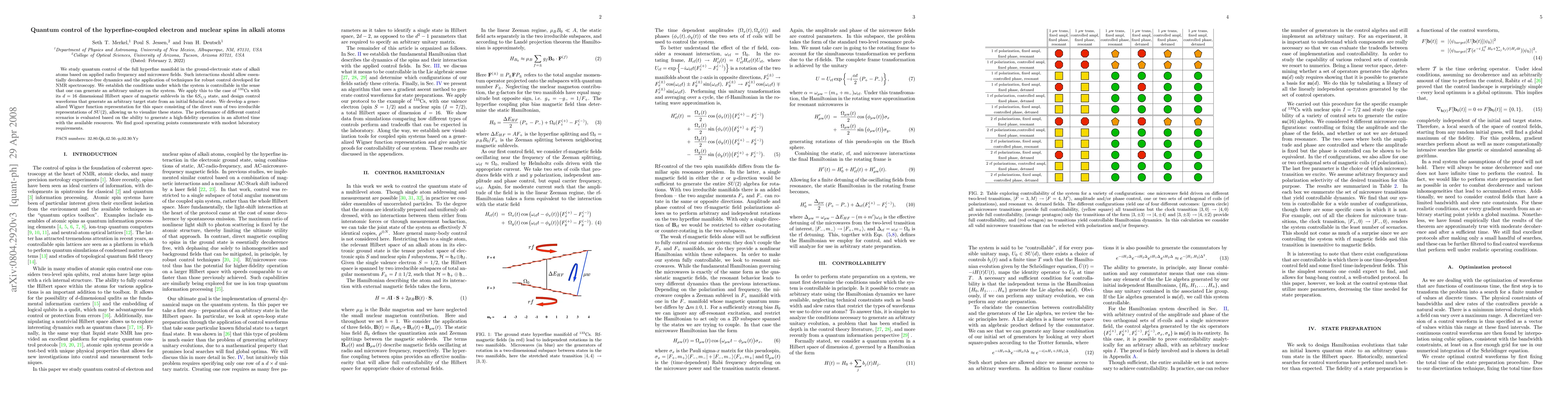 We study quantum control of the full hyperfine manifold in the ground-electronic state of alkali atoms based on applied radio frequency and microwave fields. Such interactions should allow essentially decoherence-free dynamics and the application of techniques for robust control developed for NMR spectroscopy. We establish the conditions under which the system is controllable in the sense that one can generate an arbitrary unitary on the system. We apply this to the case of $^{133}$Cs with its $d=16$ dimensional Hilbert space of magnetic sublevels in the $6S_{1/2}$ state, and design control waveforms that generate an arbitrary target state from an initial fiducial state. We develop a generalized Wigner function representation for this space consisting of the direct sum of two irreducible representation of SU(2), allowing us to visualize these states. The performance of different control scenarios is evaluated based on the ability to generate high-fidelity operation in an allotted time with the available resources. We find good operating points commensurate with modest laboratory requirements.