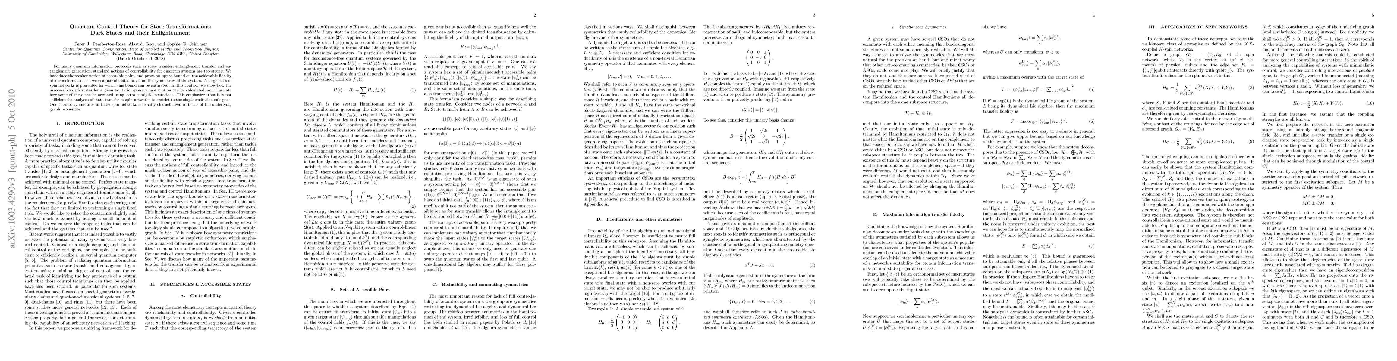 For many quantum information protocols such as state transfer, entanglement transfer and entanglement generation, standard notions of controllability for quantum systems are too strong. We introduce the weaker notion of accessible pairs, and prove an upper bound on the achievable fidelity of a transformation between a pair of states based on the symmetries of the system. A large class of spin networks is presented for which this bound can be saturated. In this context, we show how the inaccessible dark states for a given excitation-preserving evolution can be calculated, and illustrate how some of these can be accessed using extra catalytic excitations. This emphasises that it is not sufficient for analyses of state transfer in spin networks to restrict to the single excitation subspace. One class of symmetries in these spin networks is exactly characterised in terms of the underlying graph properties.
