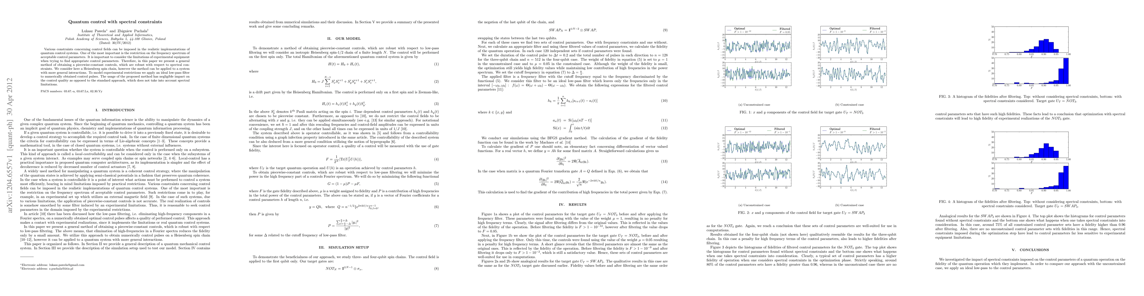 Researchers developed a method to create robust quantum control parameters with spectral constraints, improving the accuracy of experiments with limited equipment. The new approach has negligible impact on control quality compared to traditional methods.