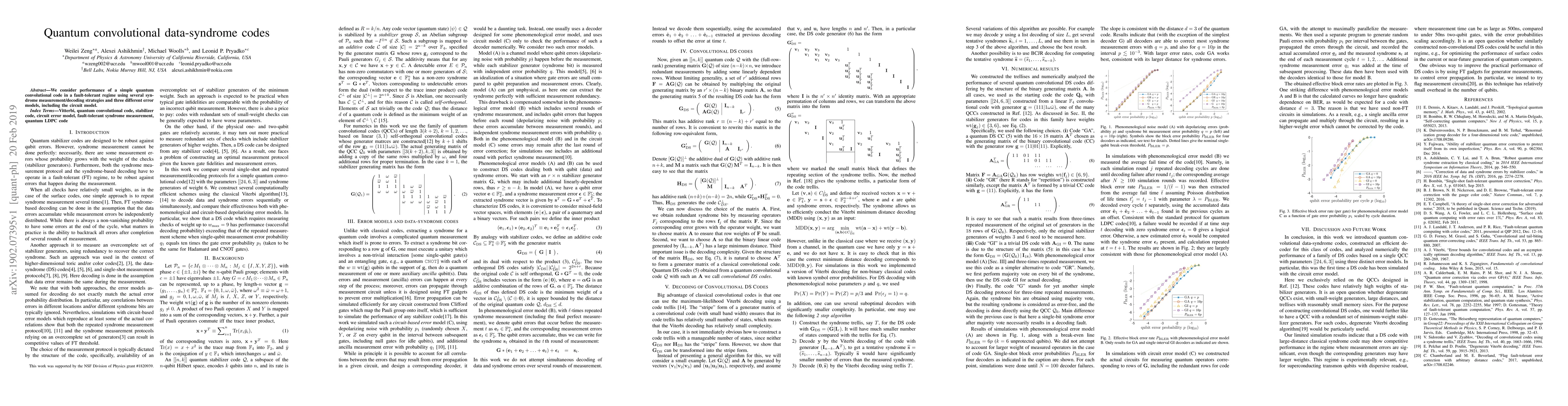 The paper presents quantum convolutional data-syndrome codes, an efficient decoder for these codes, and a novel numerical analysis of their performance under distinct error models, including the first-ever simulation with the circuit error model.