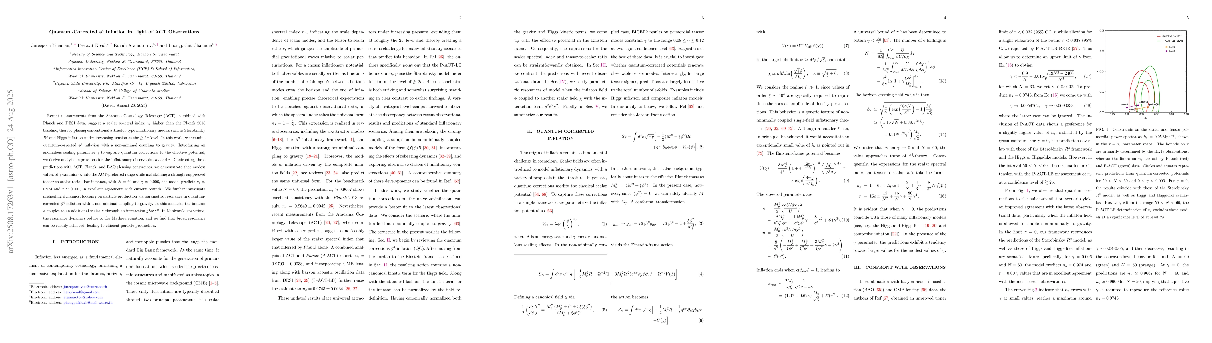 Recent measurements from the Atacama Cosmology Telescope (ACT), combined with Planck and DESI data, suggest a scalar spectral index $n_s$ higher than the Planck 2018 baseline, thereby placing conventional attractor-type inflationary models such as Starobinsky $R^2$ and Higgs inflation under increasing tension at the $\gtrsim 2\sigma$ level. In this work, we examine quantum-corrected $\phi^4$ inflation with a non-minimal coupling to gravity. Introducing an anomalous scaling parameter $\gamma$ to capture quantum corrections to the effective potential, we derive analytic expressions for the inflationary observables $n_s$ and $r$. Confronting these predictions with ACT, Planck, and BAO+lensing constraints, we demonstrate that modest values of $\gamma$ can raise $n_s$ into the ACT-preferred range while maintaining a strongly suppressed tensor-to-scalar ratio. For instance, with $N=60$ and $\gamma\simeq 0.006$, the model predicts $n_s\simeq 0.974$ and $r\simeq 0.007$, in excellent agreement with current bounds. We further investigate preheating dynamics, focusing on particle production via parametric resonance in quantum-corrected $\phi^4$ inflation with a non-minimal coupling to gravity. In this scenario, the inflaton $\phi$ couples to an additional scalar $\chi$ through an interaction $g^{2}\phi^{2}\chi^{2}$. In Minkowski spacetime, the resonance dynamics reduce to the Mathieu equation, and we find that broad resonance can be readily achieved, leading to efficient particle production.