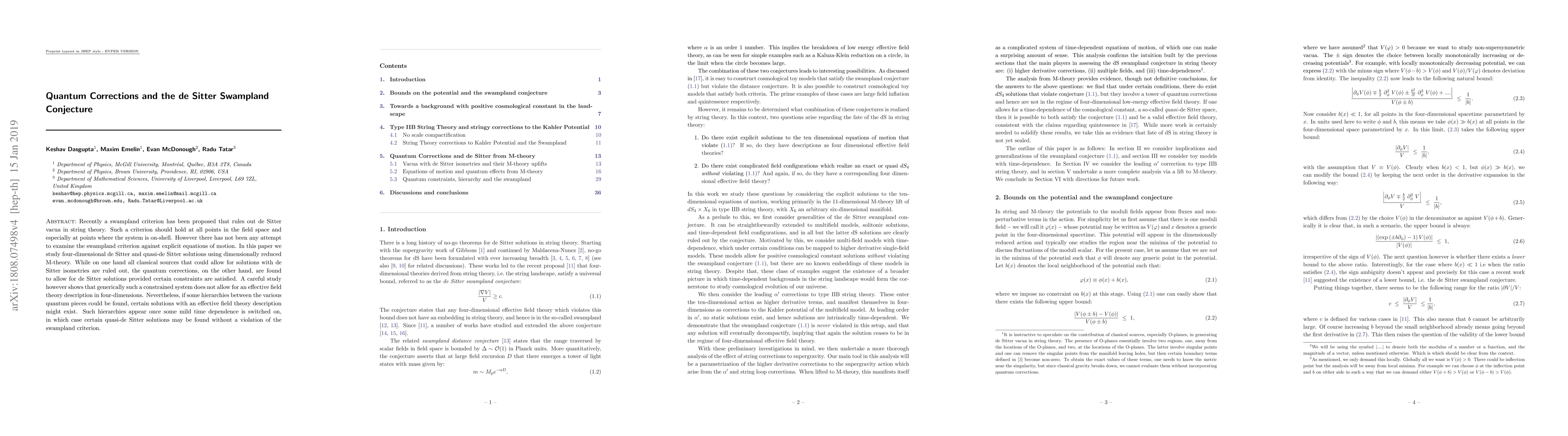 Recently a swampland criterion has been proposed that rules out de Sitter vacua in string theory. Such a criterion should hold at all points in the field space and especially at points where the system is on-shell. However there has not been any attempt to examine the swampland criterion against explicit equations of motion. In this paper we study four-dimensional de Sitter and quasi-de Sitter solutions using dimensionally reduced M-theory. While on one hand all classical sources that could allow for solutions with de Sitter isometries are ruled out, the quantum corrections, on the other hand, are found to allow for de Sitter solutions provided certain constraints are satisfied. A careful study however shows that generically such a constrained system does not allow for an effective field theory description in four-dimensions. Nevertheless, if some hierarchies between the various quantum pieces could be found, certain solutions with an effective field theory description might exist. Such hierarchies appear once some mild time dependence is switched on, in which case certain quasi-de Sitter solutions may be found without a violation of the swampland criterion.