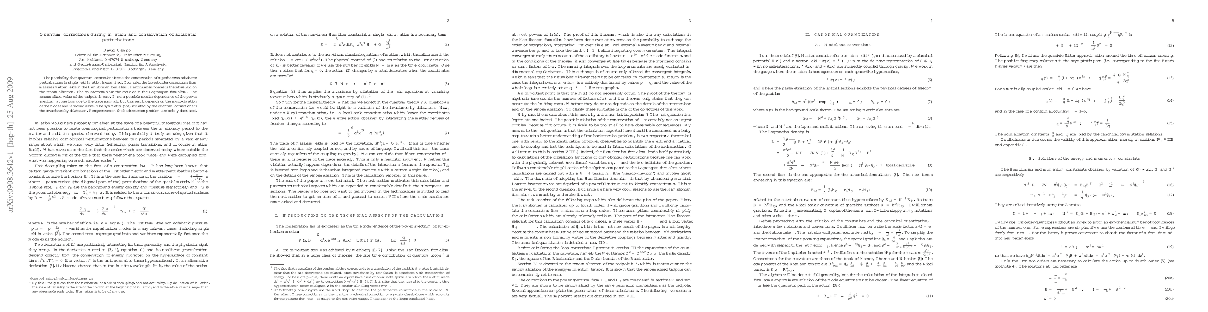 The possibility that quantum corrections break the conservation of superhorizon adiabatic perturbations in single field inflation is examined. I consider the lowest order corrections from massless matter fields in the Hamiltonian formalism. Particular emphasis is therefore laid on the renormalization. The counterterms are the same as in the Lagrangian formalism. The renormalized value of the tadpole is zero. I find a possible secular dependence of the power spectrum at one loop due to the trace anomaly, but this result depends on the approximation of the modes and is inconclusive. The symmetry (not) violated by the quantum corrections is the invariance by dilatation. Perspectives on the backreaction problem are briefly discussed.
