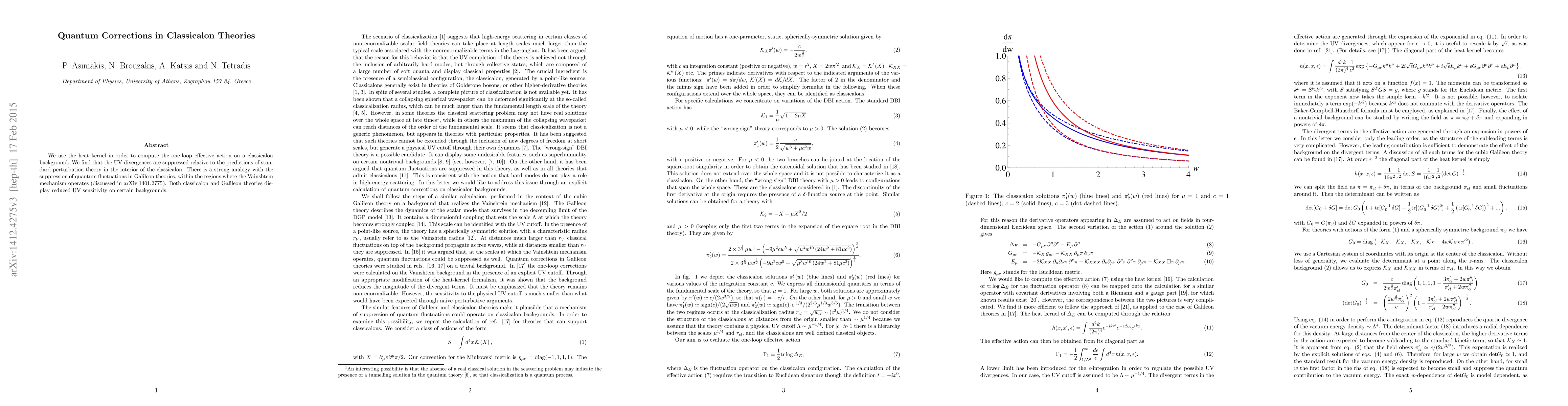 We use the heat kernel in order to compute the one-loop effective action on a classicalon background. We find that the UV divergences are suppressed relative to the predictions of standard perturbation theory in the interior of the classicalon. There is a strong analogy with the suppression of quantum fluctuations in Galileon theories, within the regions where the Vainshtein mechanism operates (discussed in arXiv:1401.2775). Both classicalon and Galileon theories display reduced UV sensitivity on certain backgrounds.