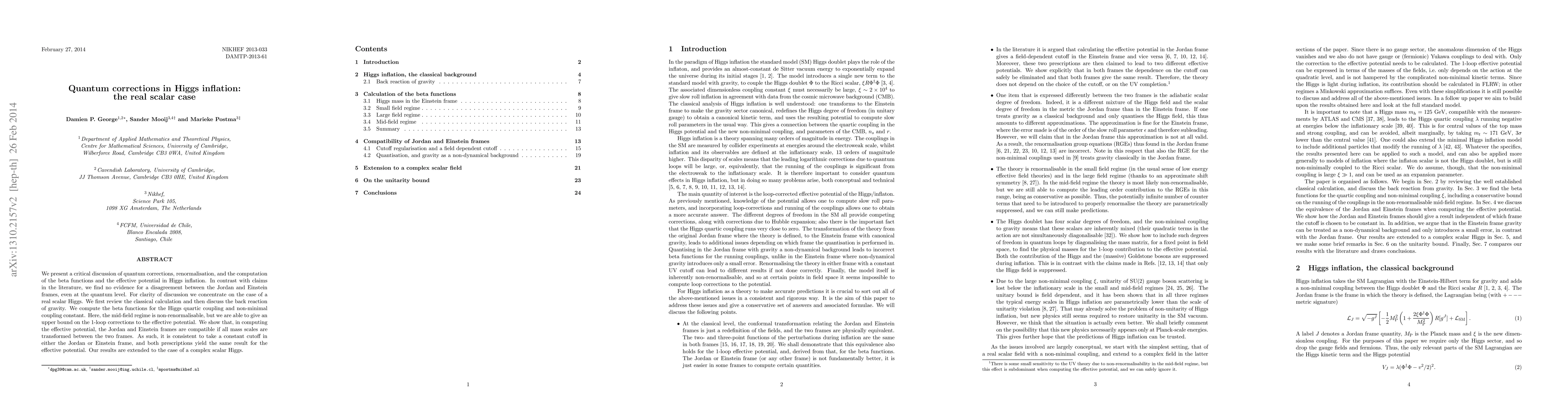 We present a critical discussion of quantum corrections, renormalisation, and the computation of the beta functions and the effective potential in Higgs inflation. In contrast with claims in the literature, we find no evidence for a disagreement between the Jordan and Einstein frames, even at the quantum level. For clarity of discussion we concentrate on the case of a real scalar Higgs. We first review the classical calculation and then discuss the back reaction of gravity. We compute the beta functions for the Higgs quartic coupling and non-minimal coupling constant. Here, the mid-field regime is non-renormalisable, but we are able to give an upper bound on the 1-loop corrections to the effective potential. We show that, in computing the effective potential, the Jordan and Einstein frames are compatible if all mass scales are transformed between the two frames. As such, it is consistent to take a constant cutoff in either the Jordan or Einstein frame, and both prescriptions yield the same result for the effective potential. Our results are extended to the case of a complex scalar Higgs.