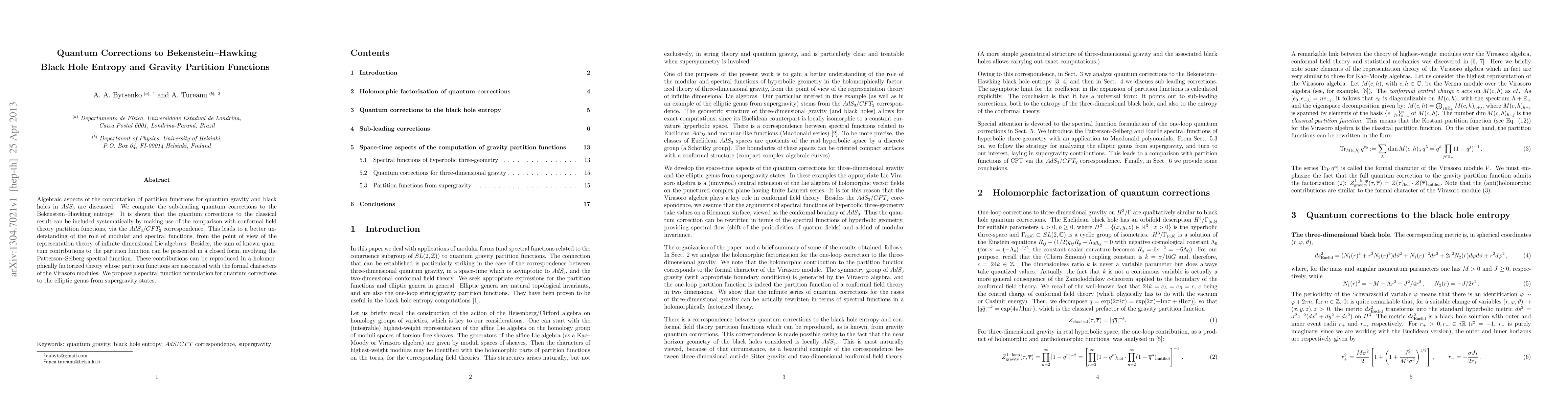 This paper computes sub-leading quantum corrections to Bekenstein-Hawking entropy using $AdS_3/CFT_2$ correspondence, showing that these corrections can be systematically included by comparing with conformal field theory partition functions. It proposes a spectral function formulation for quantum corrections to the elliptic genus from supergravity states.