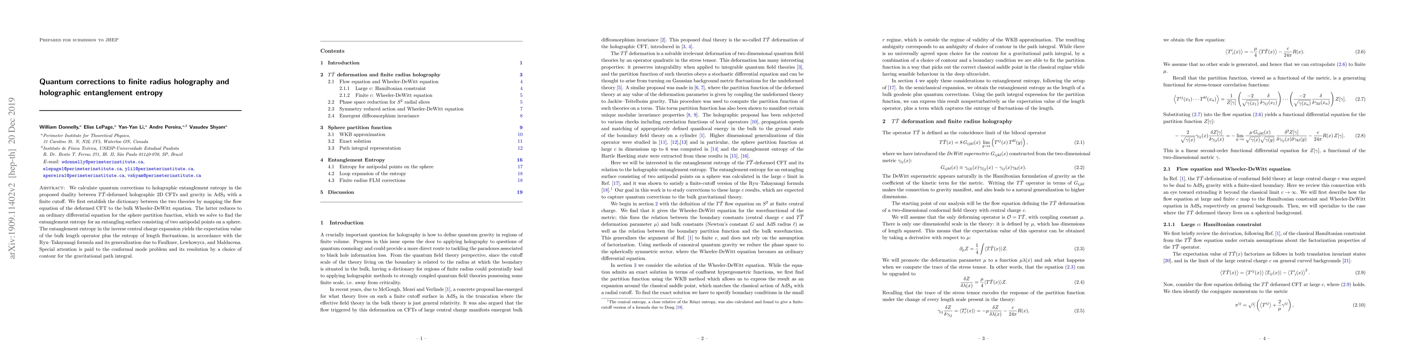 We calculate quantum corrections to holographic entanglement entropy in the proposed duality between $T\bar{T}$-deformed holographic 2D CFTs and gravity in AdS$_{3}$ with a finite cutoff. We first establish the dictionary between the two theories by mapping the flow equation of the deformed CFT to the bulk Wheeler-DeWitt equation. The latter reduces to an ordinary differential equation for the sphere partition function, which we solve to find the entanglement entropy for an entangling surface consisting of two antipodal points on a sphere. The entanglement entropy in the inverse central charge expansion yields the expectation value of the bulk length operator plus the entropy of length fluctuations, in accordance with the Ryu--Takayanagi formula and its generalization due to Faulkner, Lewkowycz, and Maldacena. Special attention is paid to the conformal mode problem and its resolution by a choice of contour for the gravitational path integral.