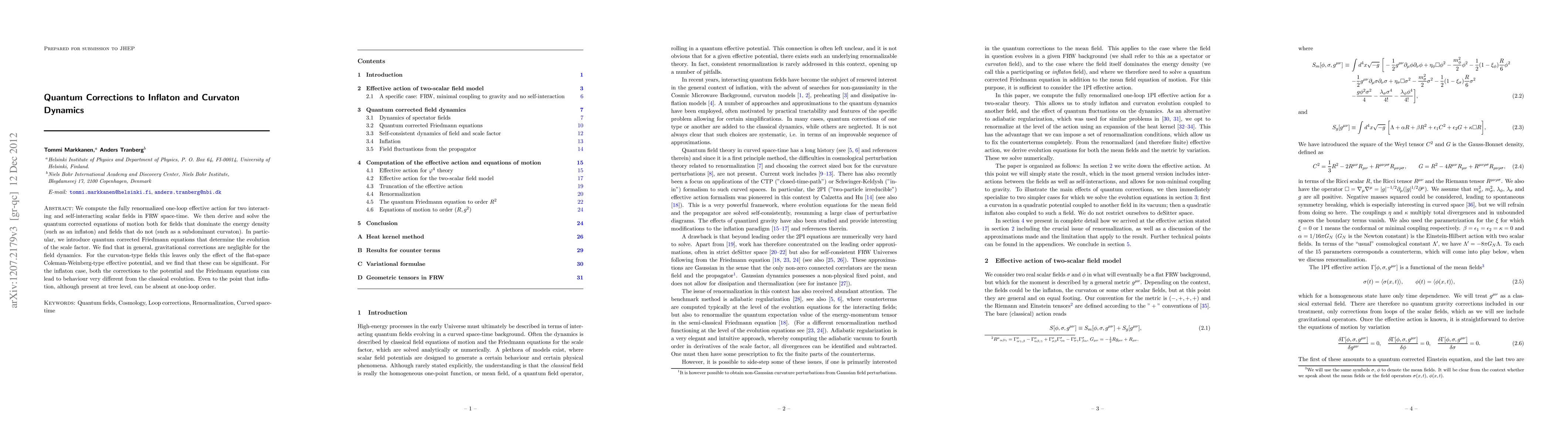 We compute the fully renormalized one-loop effective action for two interacting and self-interacting scalar fields in FRW space-time. We then derive and solve the quantum corrected equations of motion both for fields that dominate the energy density (such as an inflaton) and fields that do not (such as a subdominant curvaton). In particular, we introduce quantum corrected Friedmann equations that determine the evolution of the scale factor. We find that in general, gravitational corrections are negligible for the field dynamics. For the curvaton-type fields this leaves only the effect of the flat-space Coleman-Weinberg-type effective potential, and we find that these can be significant. For the inflaton case, both the corrections to the potential and the Friedmann equations can lead to behaviour very different from the classical evolution. Even to the point that inflation, although present at tree level, can be absent at one-loop order.