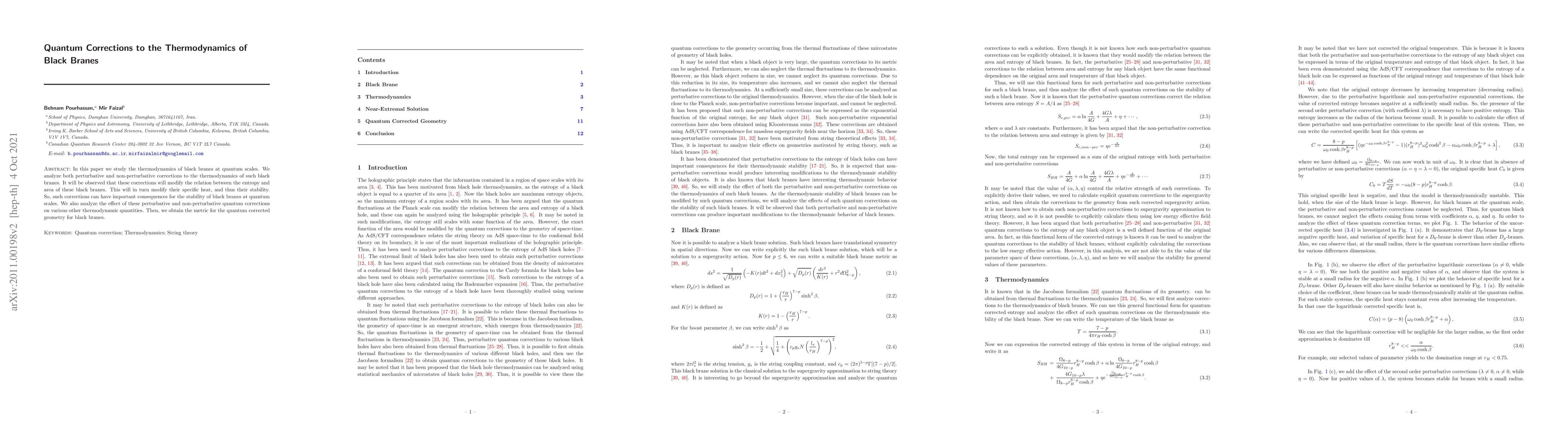 This paper investigates quantum corrections to the thermodynamics of black branes, revealing modifications to the entropy-area relation, specific heat, and stability at quantum scales. It also explores the impact of these corrections on other thermodynamic properties and derives the metric for the quantum corrected geometry.