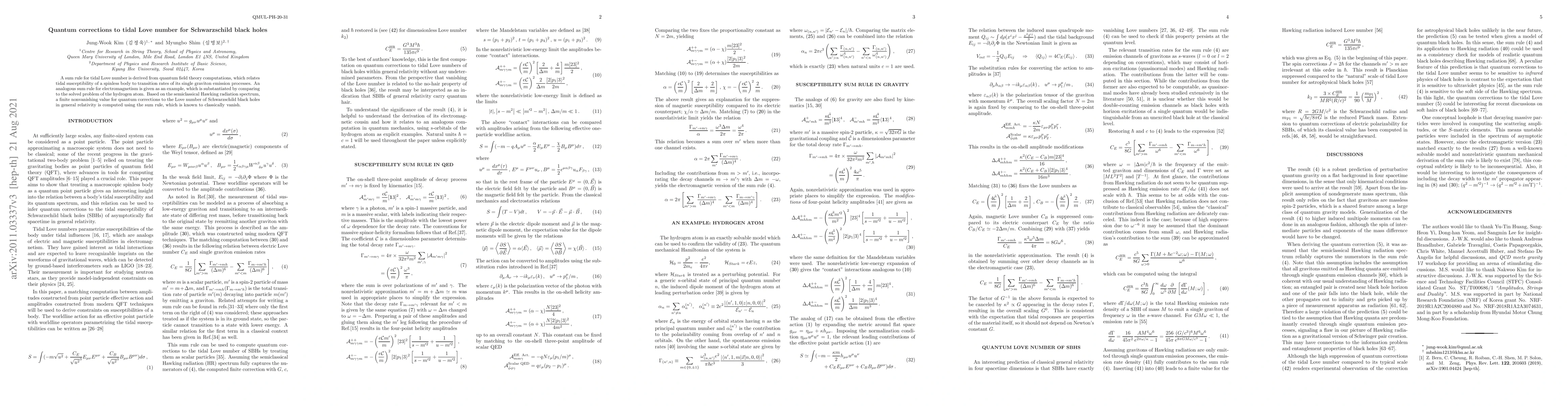 A sum rule for tidal Love number is derived from quantum field theory computations, which relates tidal susceptibility of a spinless body to transition rates of its single graviton emission processes. An analogous sum rule for electromagnetism is given as an example, which is substantiated by comparing to the solved problem of the hydrogen atom. Based on the semiclassical Hawking radiation spectrum, a finite nonvanishing value for quantum corrections to the Love number of Schwarzschild black holes in general relativity is computed using the sum rule, which is known to classically vanish.