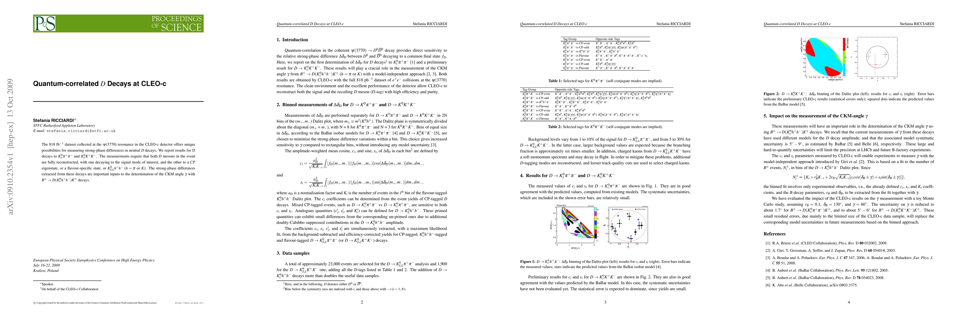 The 818 fb^-1 dataset collected at the \psi(3770) resonance in the CLEO-c detector offers unique possibilities for measuring strong-phase differences in neutral D decays. We report results for D decays to K_S pi+ pi- and K_S K+ K-. The measurements require that both D mesons in the event are fully reconstructed, with one decaying to the signal mode of interest, and the other to a CP-eigenstate, or a flavour-specific state, or K_{S,L} h+ h- (h = pi or K). The strong-phase differences extracted from these decays are important inputs to the determination of the CKM angle gamma with B->D(K_S h+ h-)K decays.