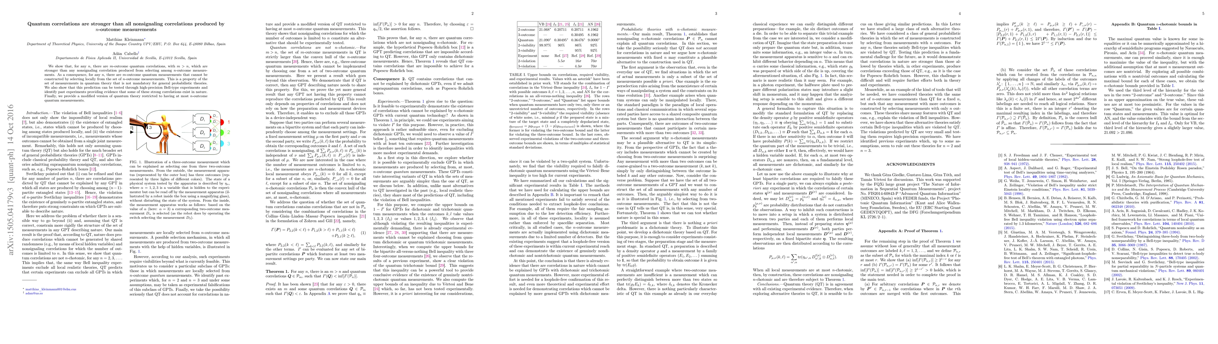 This paper demonstrates that quantum correlations can be stronger than any nonsignaling correlation derived from n-outcome measurements, indicating that some m-outcome quantum measurements cannot be constructed from n-outcome ones. The findings suggest a unique feature of quantum theory and propose a method to test these predictions via Bell-type experiments.