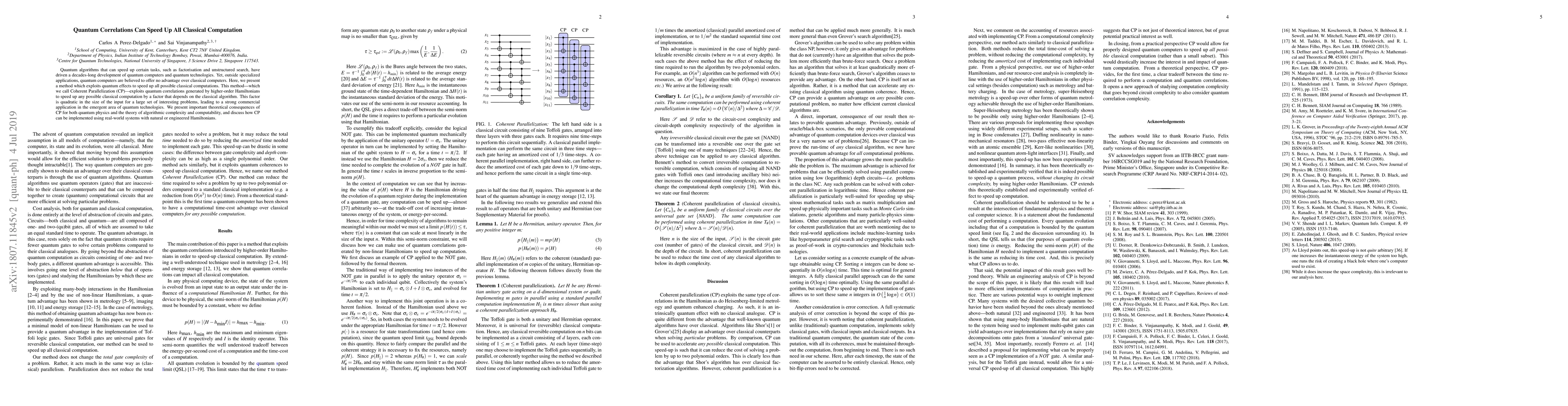 This paper introduces Coherent Parallelization (CP), a method leveraging quantum correlations to accelerate all classical computations, with a speedup factor quadratic in input size for many problems. This approach has significant implications for both quantum physics and algorithmic complexity theory.