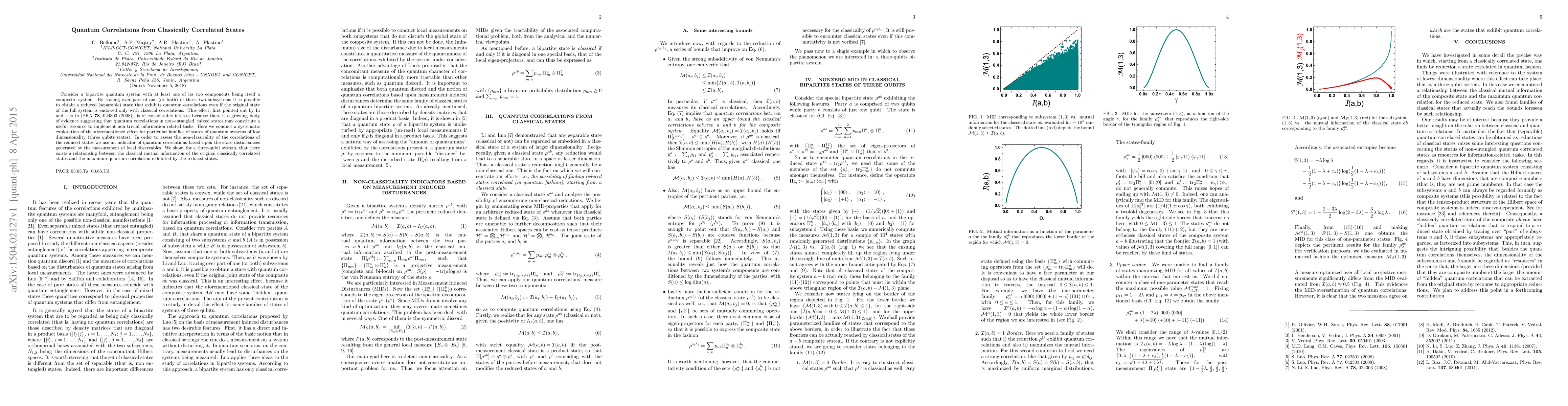 This paper explores how classically correlated quantum states can exhibit quantum correlations when traced over part of the system, even if the original state lacks entanglement. It demonstrates this effect in three-qubit systems and shows a relationship between the original classical mutual information and the maximum quantum correlation in the reduced states.