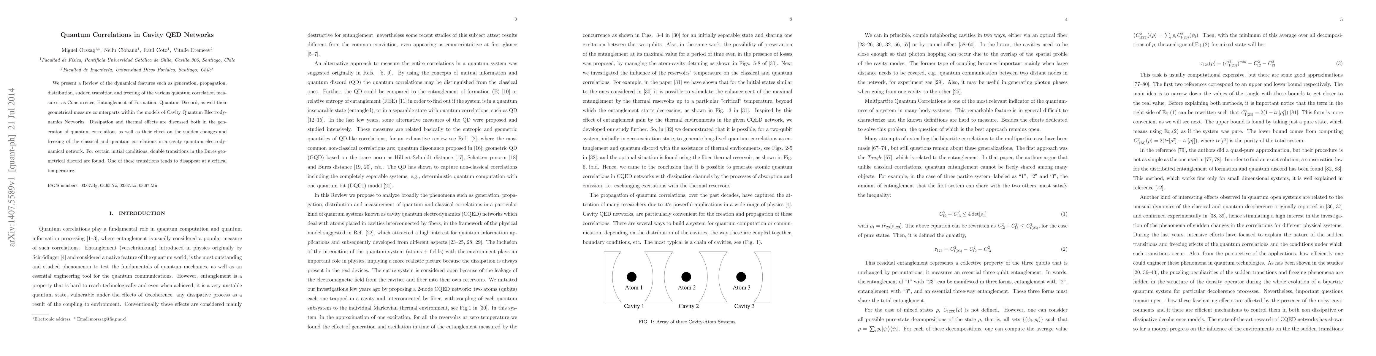 This paper reviews the dynamics of quantum correlations in Cavity Quantum Electrodynamics Networks, focusing on measures like Concurrence and Quantum Discord. It examines how dissipation and thermal effects influence the generation and sudden changes in these correlations, including the phenomenon of double transitions in Bures geometrical discord, which vanishes at a critical temperature.
