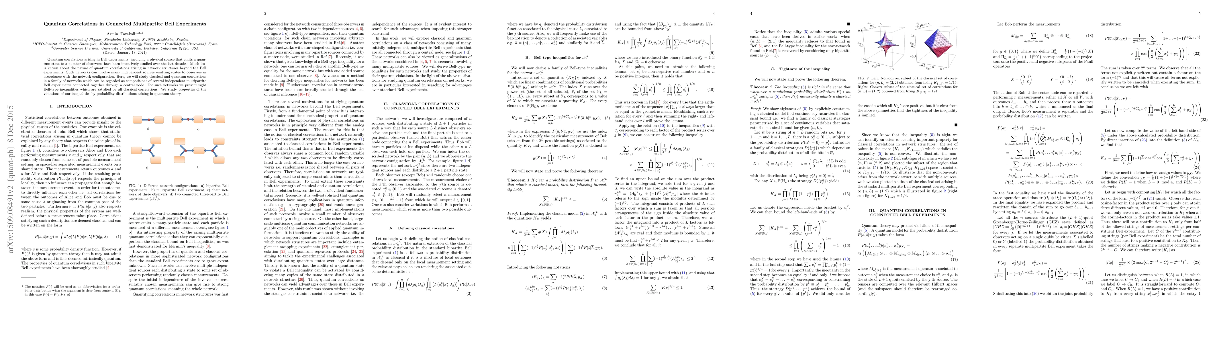 This paper investigates quantum correlations in multipartite networks composed of interconnected Bell experiments. It introduces Bell-type inequalities for classical correlations and examines how quantum theory's probability distributions violate these inequalities, providing insights into the nature of quantum correlations in such network structures.