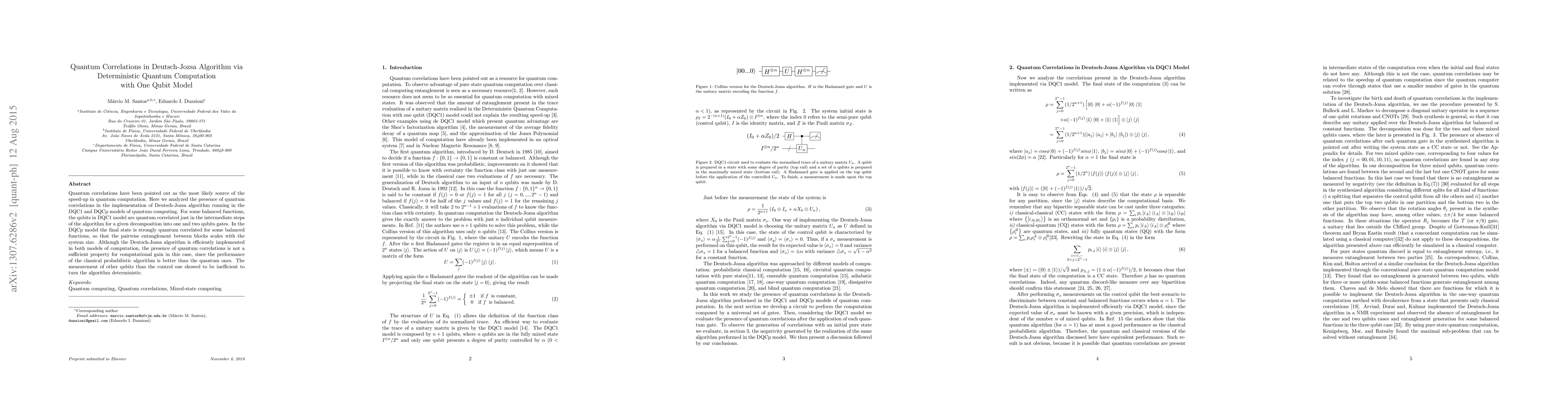 This paper investigates quantum correlations in the Deutsch-Jozsa algorithm executed via DQC1 and DQCp models, finding quantum correlations present in intermediate and final states, respectively. Despite quantum correlations, the algorithm does not outperform classical probabilistic methods, highlighting that quantum correlations alone do not guarantee computational advantage.