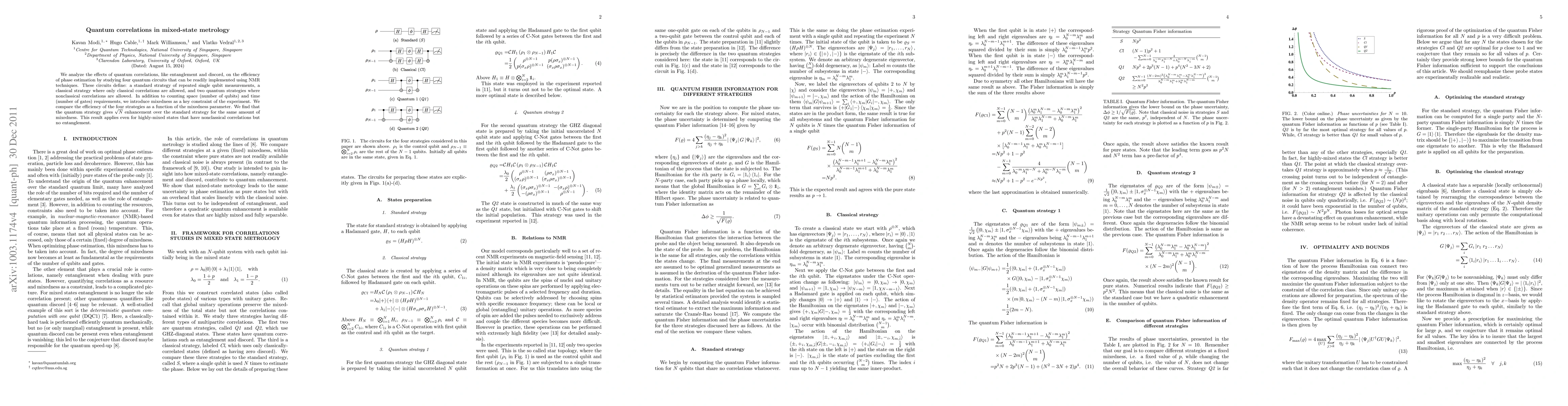 This paper investigates how quantum correlations like entanglement and discord improve phase estimation efficiency in mixed-state metrology, comparing classical and quantum strategies. It finds that quantum strategies provide a significant enhancement over classical methods, even for highly mixed states with nonclassical correlations but no entanglement.