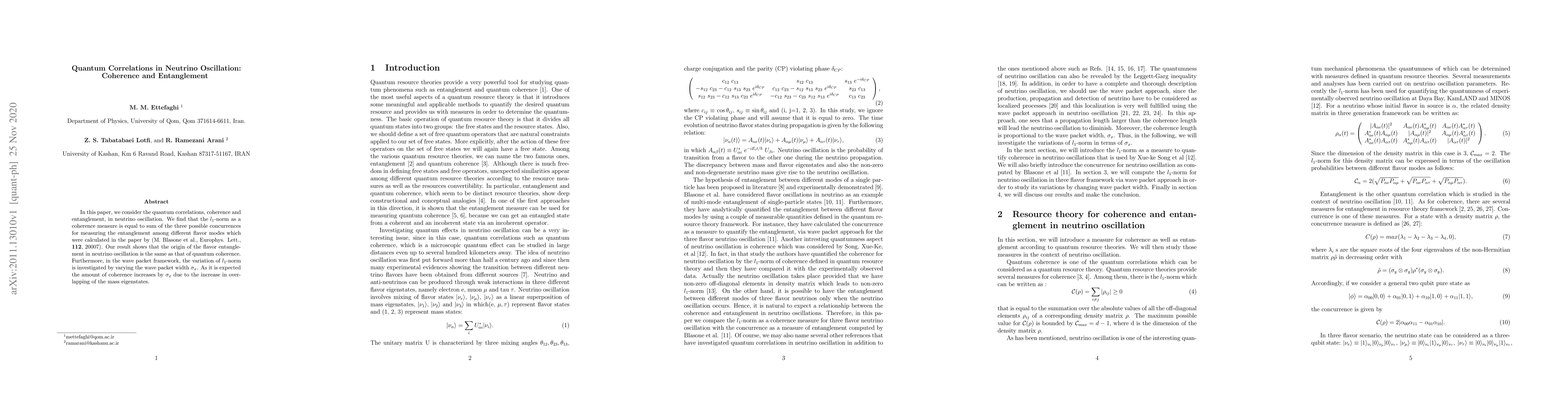 This paper investigates quantum correlations, coherence, and entanglement in neutrino oscillation, revealing that the $l_{1}$-norm coherence measure equals the sum of three concurrences for flavor mode entanglement. The study concludes that the origin of flavor entanglement and quantum coherence in neutrino oscillation is identical, and explores how coherence varies with wave packet width $\sigma_{x}$.