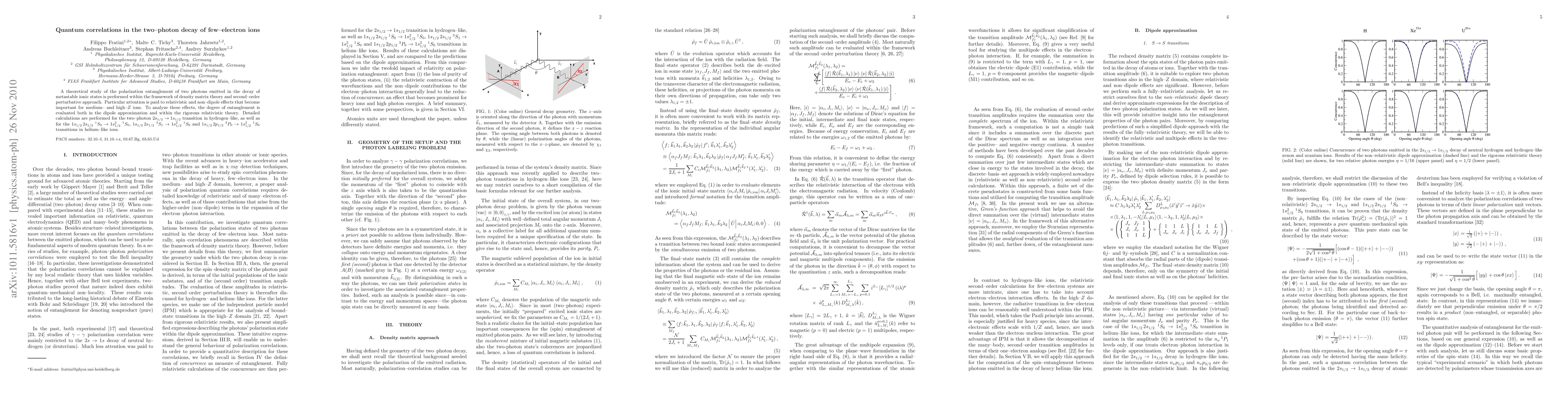 A theoretical study of the polarization entanglement of two photons emitted in the decay of metastable ionic states is performed within the framework of density matrix theory and second-order perturbative approach. Particular attention is paid to relativistic and non-dipole effects that become important for medium- and high-$Z$ ions. To analyze these effects, the degree of entanglement is evaluated both in the dipole approximation and within the rigorous relativistic theory. Detailed calculations are performed for the two-photon $2s_{1/2}\to 1s_{1/2}$ transition in hydrogen-like, as well as for the $1s_{1/2}\, 2s_{1/2} \; {}^1S_0 \to 1s_{1/2}^2 \; {}^1S_0$, $1s_{1/2} \, 2s_{1/2} \; {}^3S_1\to 1s_{1/2}^2 \; {}^1S_0$ and $1s_{1/2} \, 2p_{1/2} \; {}^3P_0\to 1s_{1/2}^2 \; {}^1S_0$ transitions in helium-like ions.