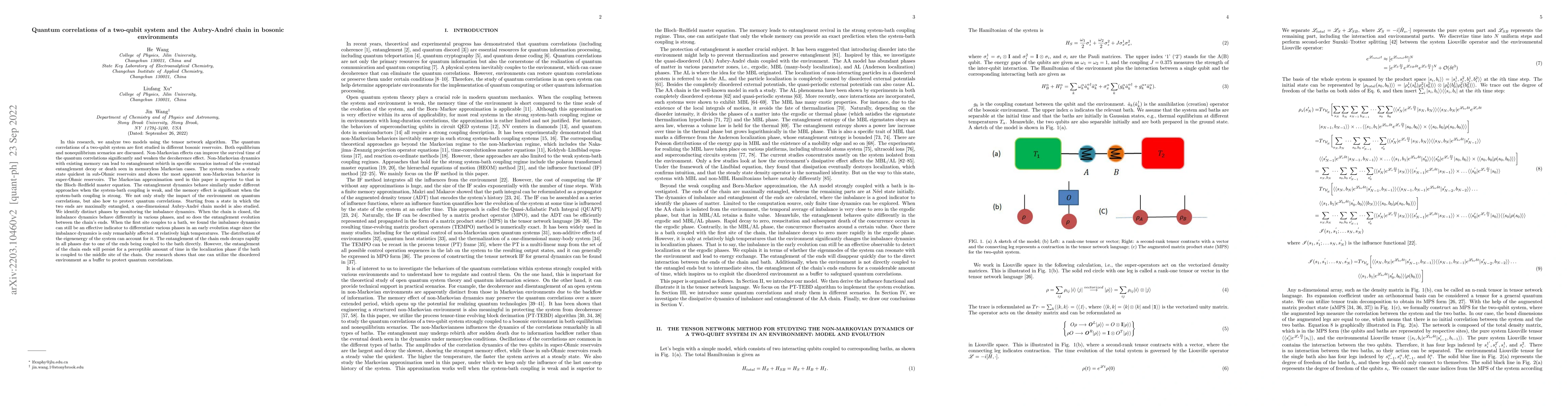 In this research, we analyze two models using the tensor network algorithm. The quantum correlations of a two-qubit system are first studied in different bosonic reservoirs. Both equilibrium and nonequilibrium scenarios are discussed. Non-Markovian effects can improve the survival time of the quantum correlations significantly and weaken the decoherence effect. Non-Markovian dynamics with existing memory can lead to entanglement rebirth in specific scenarios instead of the eventual entanglement decay or death seen in memoryless Markovian cases. The system reaches a steady state quickest in sub-Ohmic reservoirs and shows the most apparent non-Markovian behavior in super-Ohmic reservoirs. We not only study the impact of the environment on quantum correlations but also how to protect quantum correlations. Starting from a state in which the two ends are maximally entangled, a one-dimensional AA chain model is also studied. We identify distinct phases by monitoring the imbalance dynamics. When the chain is closed, the imbalance dynamics behave differently in various phases, and so does the entanglement evolution between the chain's ends. When the first site couples to a bath, we found the imbalance dynamics can still be an effective indicator to differentiate various phases in an early evolution stage since the imbalance dynamics is only remarkably affected at relatively high temperatures. The distribution of the eigenenergy of the system can account for it. The entanglement of the chain ends decays rapidly in all phases due to one of the ends being coupled to the bath directly. However, the entanglement of the chain ends will persist for a perceptible amount of time in the localization phase if the bath is coupled to the middle site of the chain. Our research shows that one can utilize the disordered environment as a buffer to protect quantum correlations.
