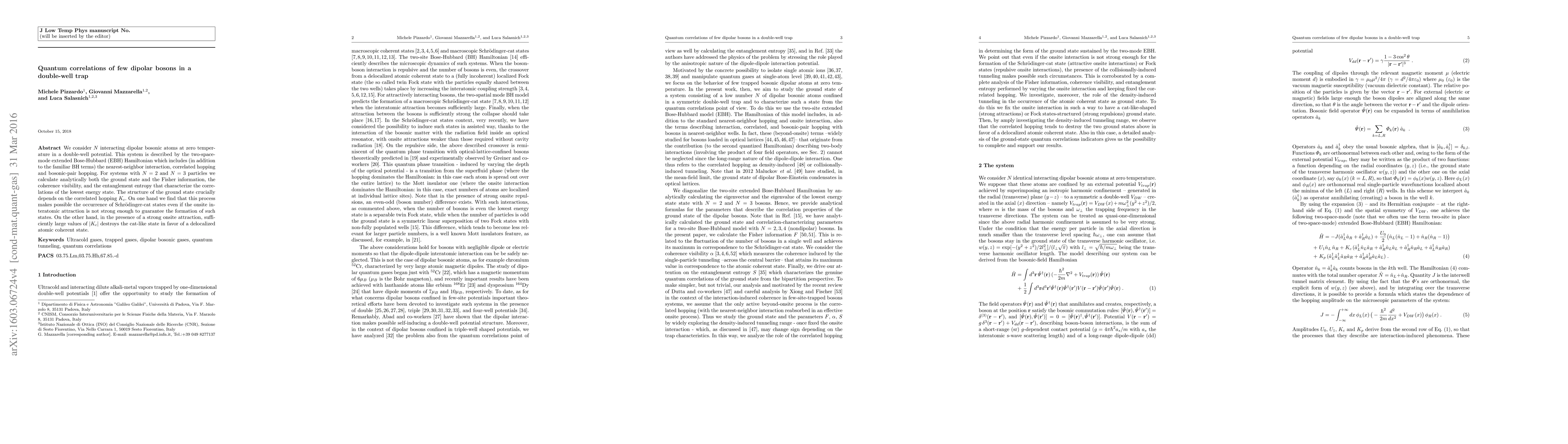 Researchers studied interactions of dipolar bosons in a double-well trap, finding that correlated hopping can create Schrödinger-cat states even with weak attraction, but destroys them for strong attraction.