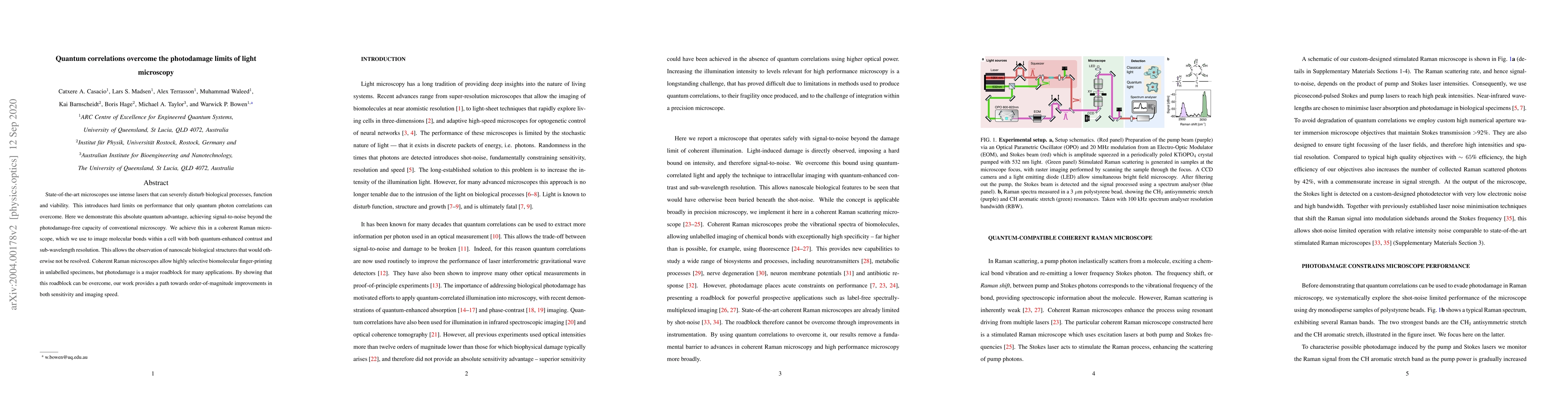 This research demonstrates that quantum photon correlations can surpass photodamage limitations in microscopy, enabling imaging of molecular bonds within cells with enhanced contrast and sub-wavelength resolution. The method, applied to a coherent Raman microscope, paves the way for significant improvements in sensitivity and imaging speed without causing harm to biological specimens.