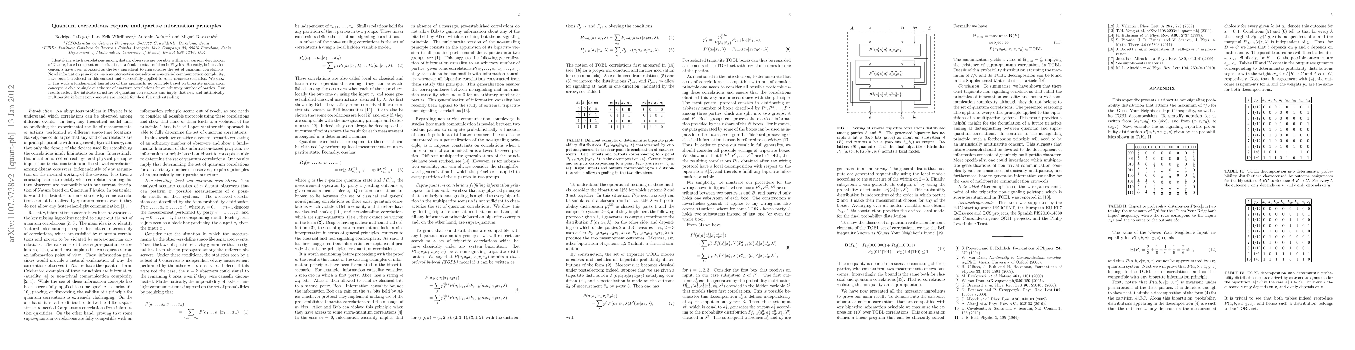 This paper demonstrates that existing bipartite information principles cannot fully characterize quantum correlations among multiple parties, highlighting the necessity for new multipartite information concepts to understand the complex structure of quantum correlations.