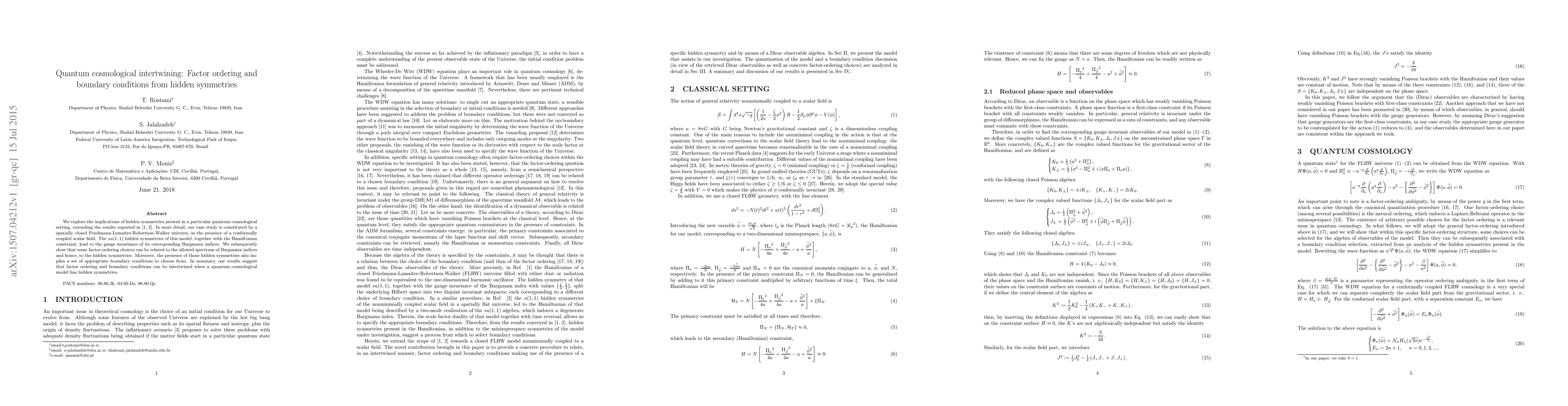 This paper explores the connection between factor ordering and boundary conditions in a quantum cosmological model with hidden symmetries, revealing an intertwined relationship between these parameters.