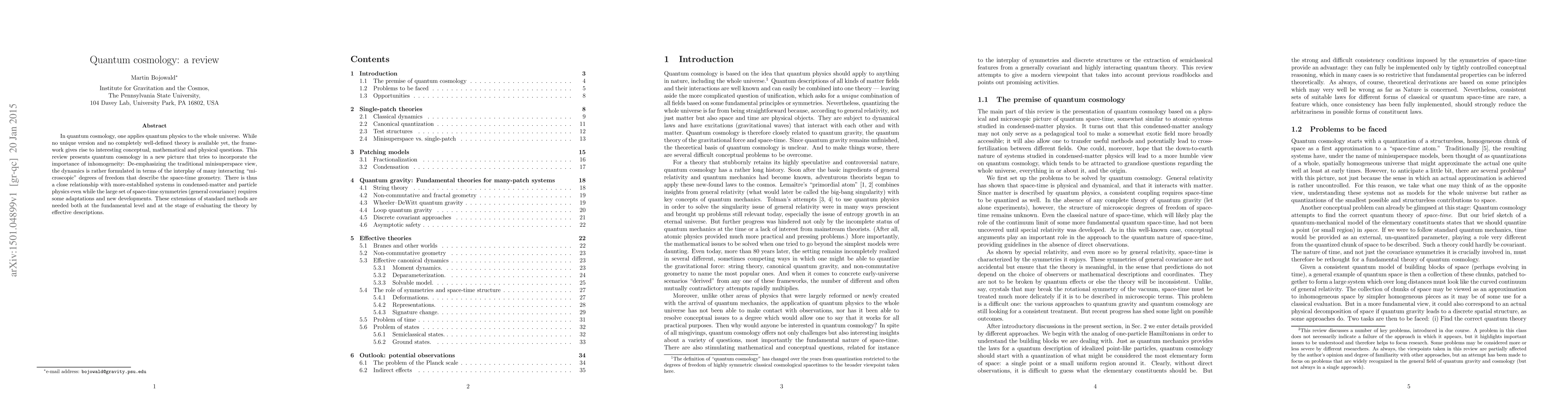 Quantum cosmology explores applying quantum physics to the entire universe, focusing on inhomogeneity and interacting microscopic degrees of freedom to describe space-time geometry. This framework brings together concepts from condensed-matter and particle physics with general relativity.