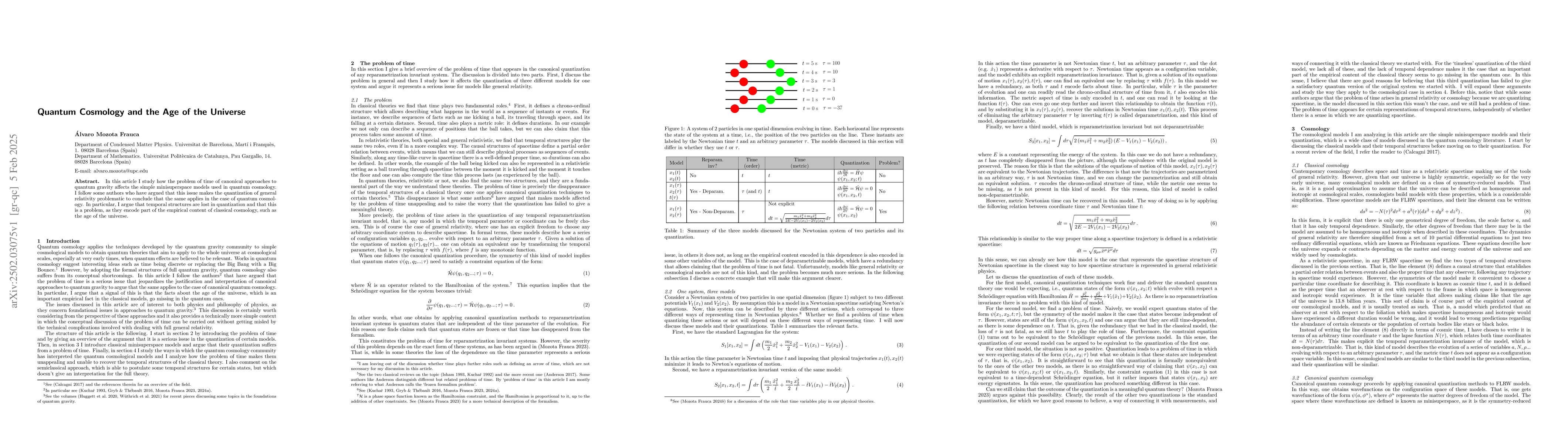 This paper explores how the issue of time in canonical approaches to quantum gravity impacts minisuperspace models in quantum cosmology, arguing that quantization leads to the loss of temporal structures essential for the age of the universe, thus posing a significant problem.