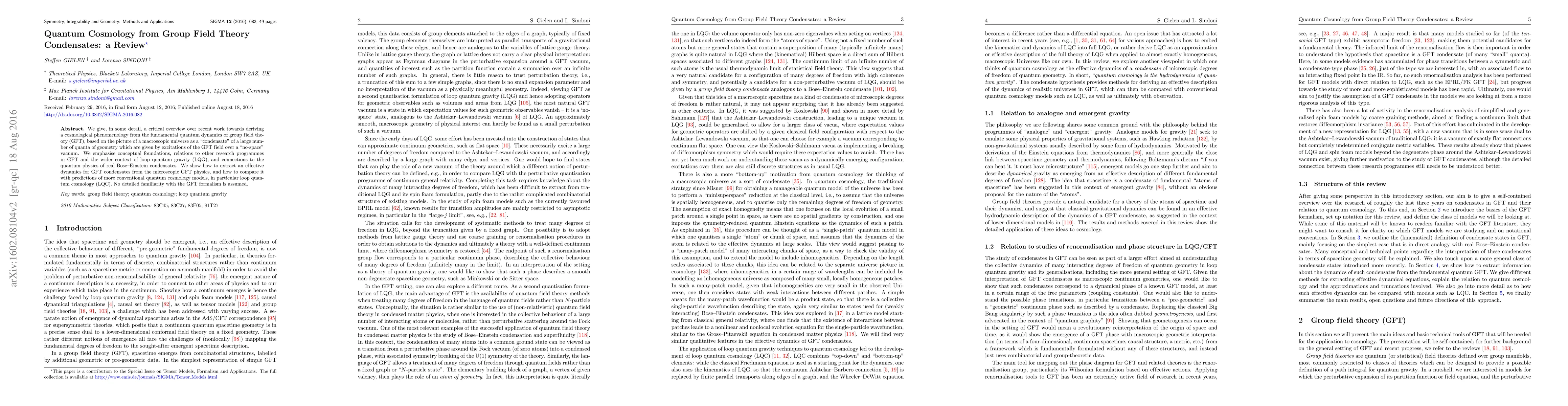 The paper provides a critical overview of recent work towards deriving a cosmological phenomenology from the fundamental quantum dynamics of Group Field Theory (GFT), focusing on the concept of a macroscopic universe as a 'condensate' of GFT quanta over a 'no-space' vacuum.