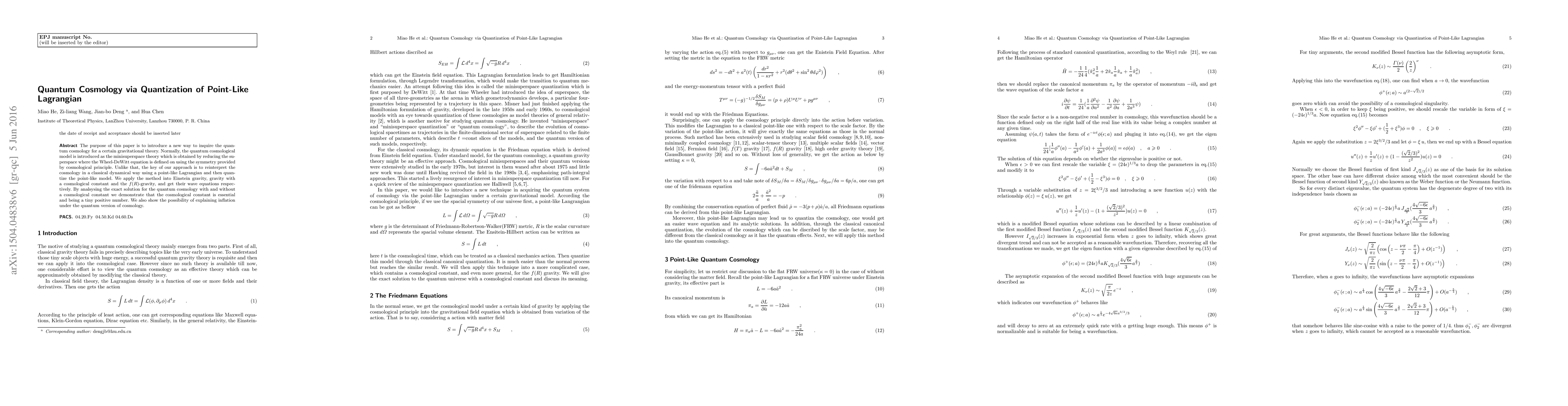 This paper proposes a novel method for quantum cosmology by quantizing a point-like Lagrangian instead of using minisuperspace theory. It applies this approach to Einstein gravity, $f(R)$-gravity, and gravity with a cosmological constant, demonstrating the necessity of a tiny positive cosmological constant and the potential for explaining inflation.