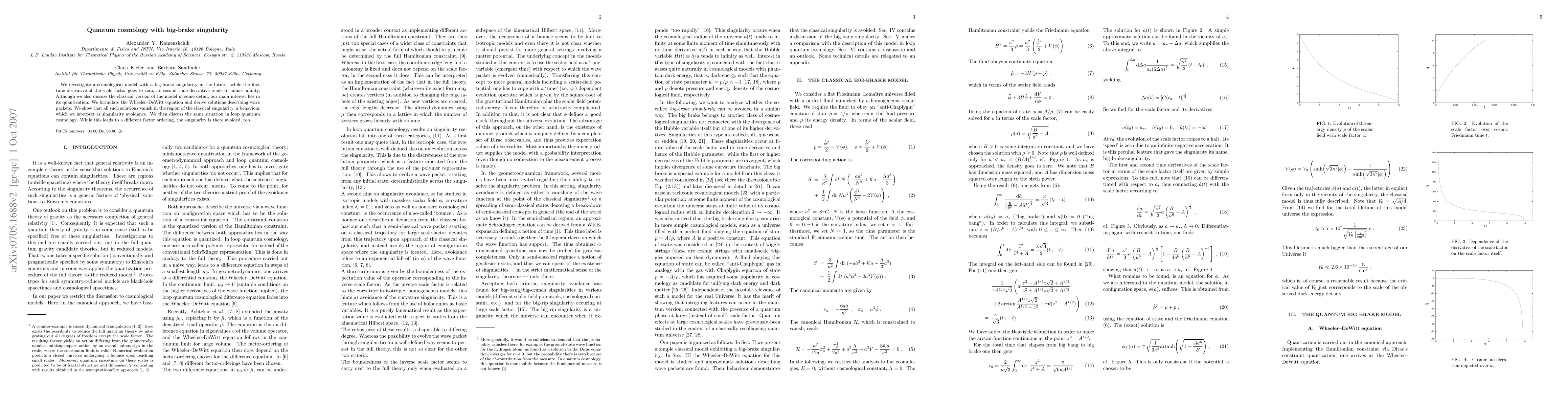 This research explores a cosmological model with a 'big-brake' singularity in the future, where the scale factor's acceleration becomes infinite as its velocity approaches zero. Quantum formulation via Wheeler-DeWitt equation reveals wave packet solutions vanishing at the classical singularity, suggesting avoidance. Loop quantum cosmology similarly avoids this singularity, indicating consistent resolution across different formulations.