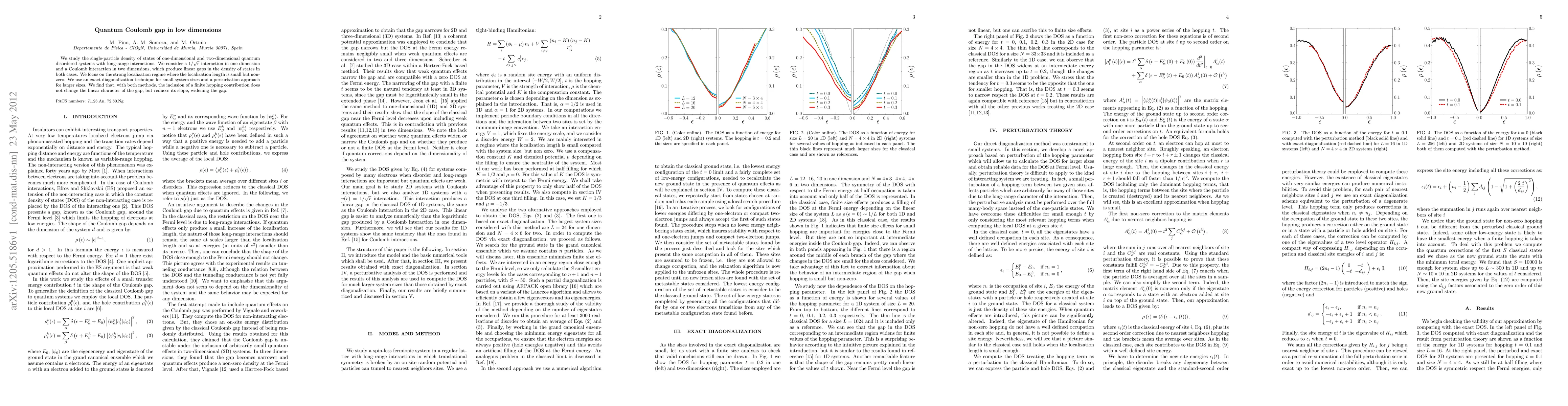 We study the single-particle density of states of one-dimensional and two-dimensional quantum disordered systems with long-range interactions. We consider a $1/\sqrt{r}$ interaction in one dimension and a Coulomb interaction in two dimensions, which produce linear gaps in the density of states in both cases. We focus on the strong localization regime where the localization length is small but non-zero. We use an exact diagonalization technique for small system sizes and a perturbation approach for larger sizes. We find that, with both methods, the inclusion of a finite hopping contribution does not change the linear character of the gap, but reduces its slope, widening the gap.