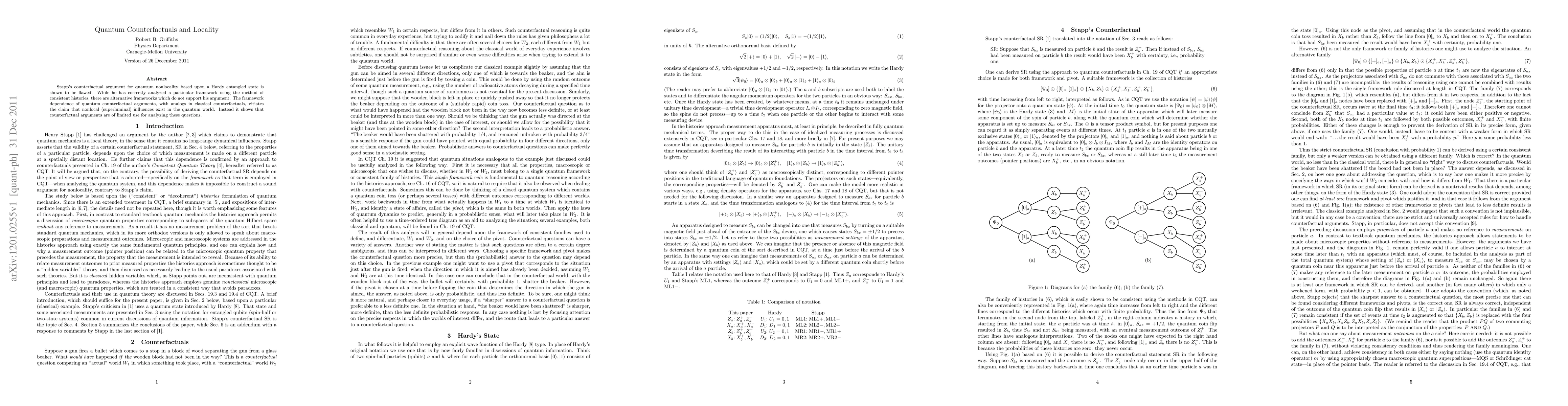 Stapp's counterfactual argument for quantum nonlocality based upon a Hardy entangled state is shown to be flawed. While he has correctly analyzed a particular framework using the method of consistent histories, there are alternative frameworks which do not support his argument. The framework dependence of quantum counterfactual arguments, with analogs in classical counterfactuals, vitiates the claim that nonlocal (superluminal) influences exist in the quantum world. Instead it shows that counterfactual arguments are of limited use for analyzing these questions.