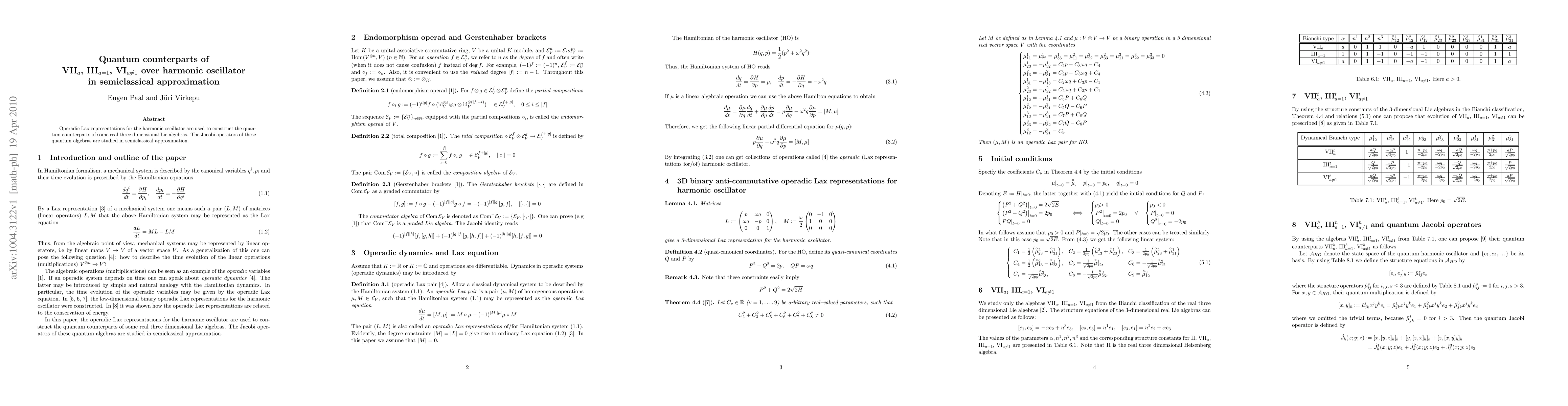 Operadic Lax representations for the harmonic oscillator are used to construct the quantum counterparts of some real three dimensional Lie algebras. The Jacobi operators of these quantum algebras are studied in semiclassical approximation.