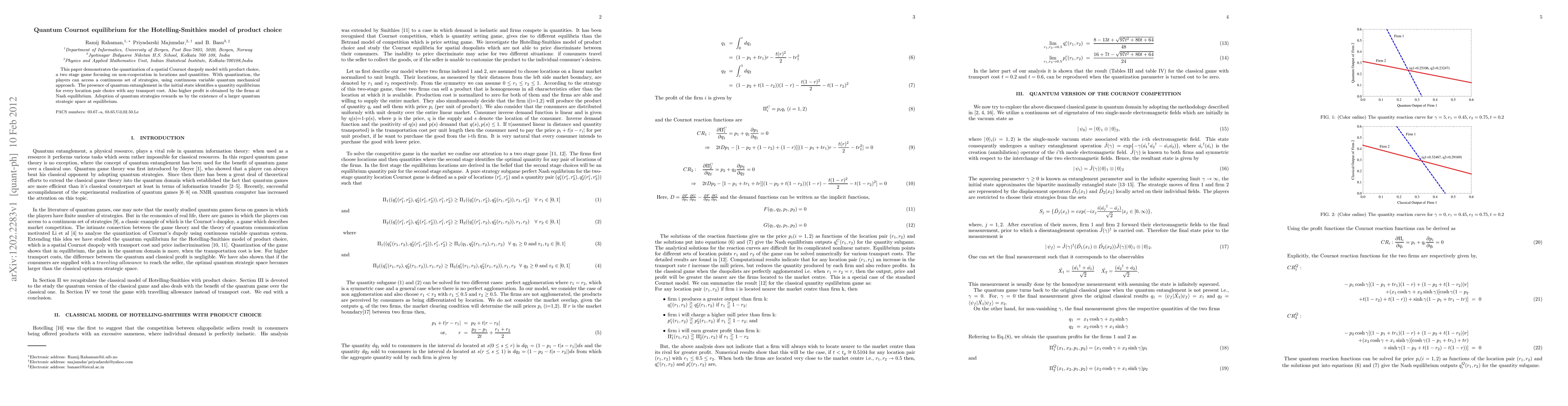 This paper demonstrates the quantization of a spatial Cournot duopoly model with product choice, a two stage game focusing on non-cooperation in locations and quantities. With quantization, the players can access a continuous set of strategies, using continuous variable quantum mechanical approach. The presence of quantum entanglement in the initial state identifies a quantity equilibrium for every location pair choice with any transport cost. Also higher profit is obtained by the firms at Nash equilibrium. Adoption of quantum strategies rewards us by the existence of a larger quantum strategic space at equilibrium.