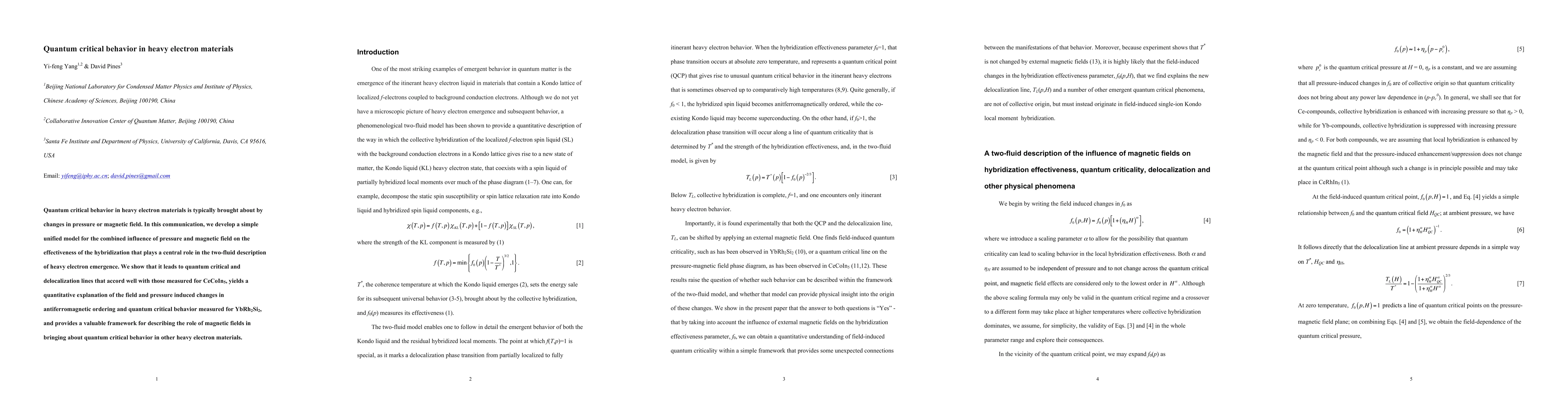 This paper develops a unified model for the effects of pressure and magnetic field on hybridization in heavy electron materials, explaining quantum critical behavior and delocalization lines observed in CeCoIn5 and YbRh2Si2, and offering a framework for understanding similar phenomena in other materials.