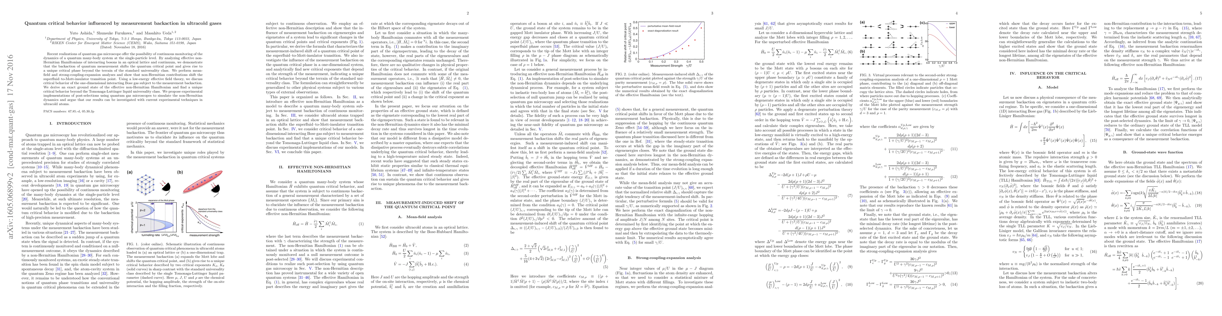 Recent realizations of quantum gas microscope offer the possibility of continuous monitoring of the dynamics of a quantum many-body system at the single-particle level. By analyzing effective non-Hermitian Hamiltonians of interacting bosons in an optical lattice and continuum, we demonstrate that the backaction of quantum measurement shifts the quantum critical point and gives rise to a unique critical phase beyond the terrain of the standard universality class. We perform mean-field and strong-coupling-expansion analyses and show that non-Hermitian contributions shift the superfluid--to-Mott-insulator transition point. Using a low-energy effective field theory, we discuss critical behavior of the one-dimensional interacting Bose gas subject to the measurement backaction. We derive an exact ground state of the effective non-Hermitian Hamiltonian and find a unique critical behavior beyond the Tomonaga-Luttinger liquid universality class. We propose experimental implementations of post-selections using quantum gas microscopes to simulate the non-Hermitian dynamics and argue that our results can be investigated with current experimental techniques in ultracold atoms.