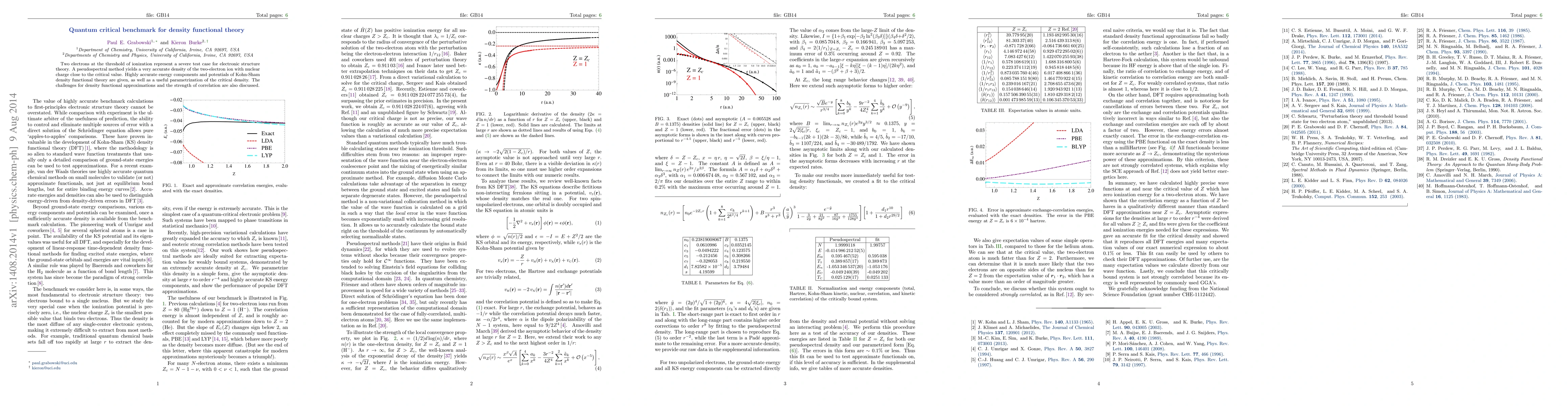This paper presents a highly accurate pseudospectral method for calculating the density of a two-electron ion near its critical ionization threshold, providing benchmark data for density functional theory. It discusses the challenges posed by strong electron correlation and the limitations of current density functional approximations.