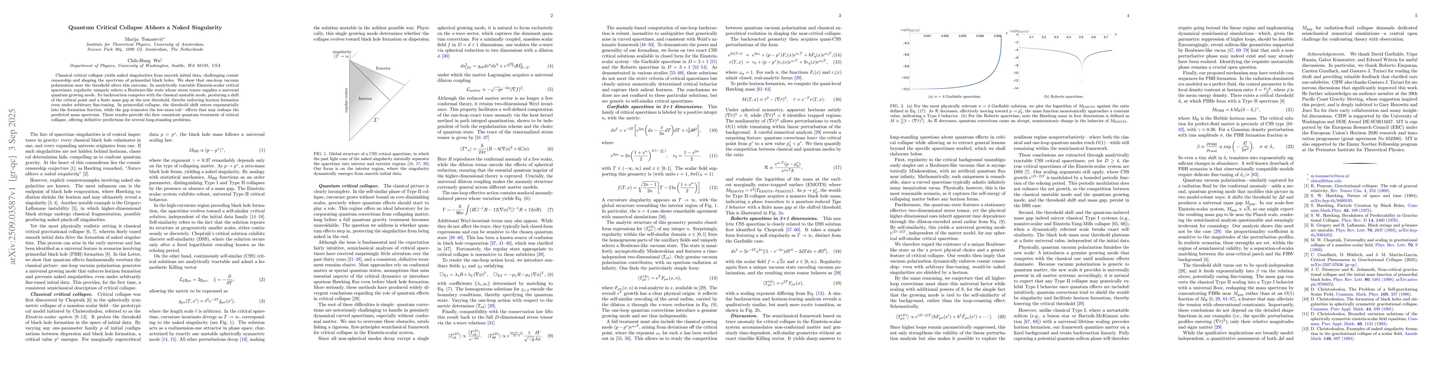 Classical critical collapse yields naked singularities from smooth initial data, challenging cosmic censorship and shaping the spectrum of primordial black holes. We show that one-loop vacuum polarization near the threshold alters this outcome. In analytically tractable Einstein-scalar critical spacetimes, regularity uniquely selects a Boulware-like state whose stress tensor supplies a universal quantum growing mode. Its backreaction competes with the classical unstable mode, producing a shift of the critical point and a finite mass gap at the new threshold, thereby enforcing horizon formation even under arbitrary fine-tuning. In primordial collapse, the threshold shift enters exponentially into the formation fraction, while the gap truncates the low-mass tail -- effects that may reshape the predicted mass spectrum. These results provide the first consistent quantum treatment of critical collapse, offering definitive predictions for several long-standing problems.