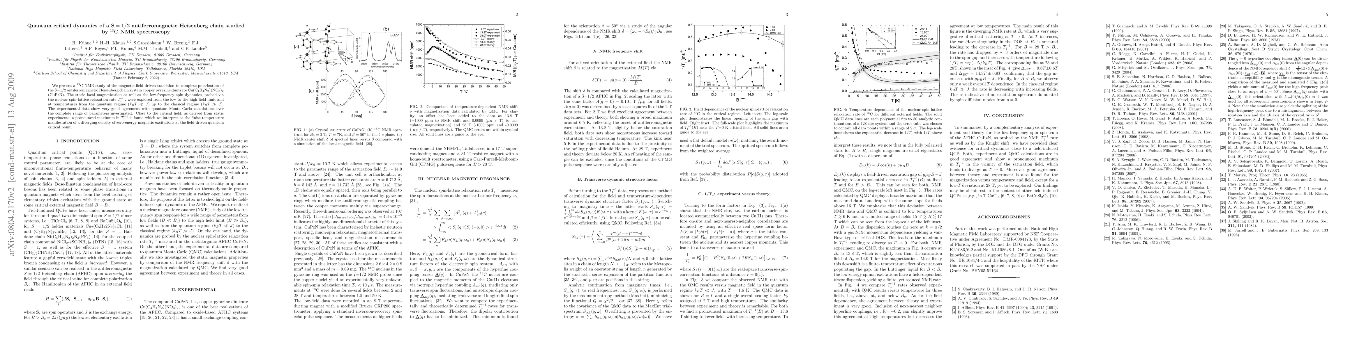This paper investigates the quantum critical dynamics of a S=1/2 antiferromagnetic Heisenberg chain using 13C-NMR spectroscopy on copper pyrazine dinitrate. The study reveals a maximum in the nuclear spin-lattice relaxation rate near the critical field, interpreted as evidence of a diverging density of zero-energy magnetic excitations at the quantum critical point.
