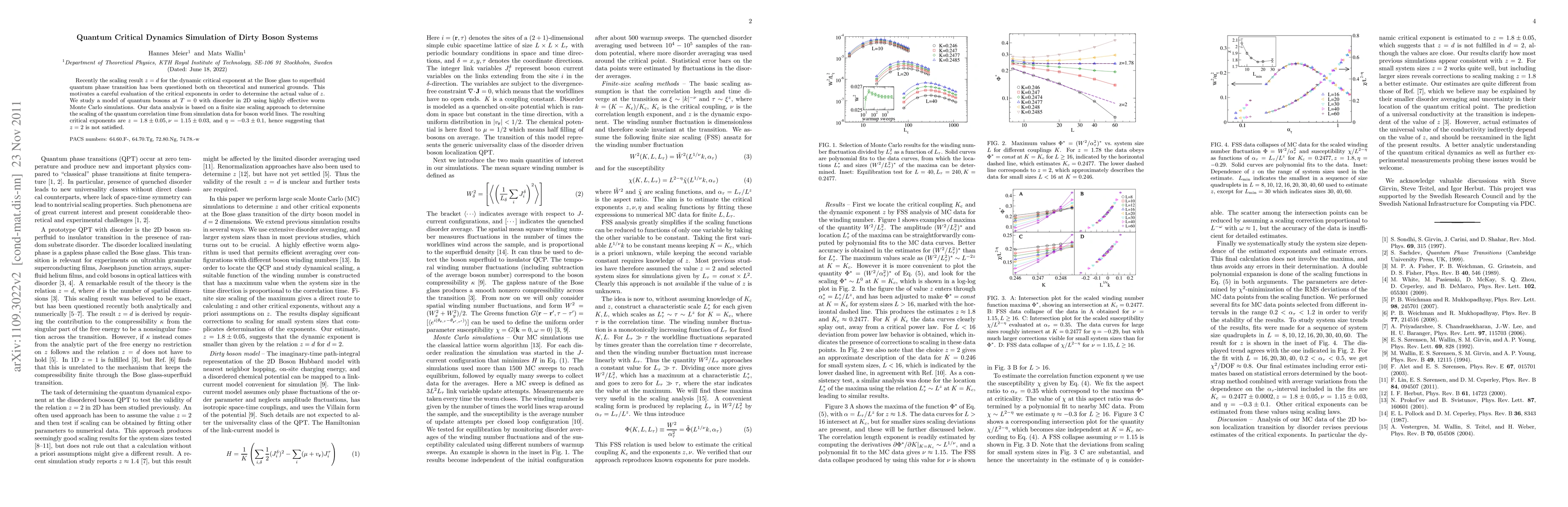 Recently the scaling result $z=d$ for the dynamic critical exponent at the Bose glass to superfluid quantum phase transition has been questioned both on theoretical and numerical grounds. This motivates a careful evaluation of the critical exponents in order to determine the actual value of $z$. We study a model of quantum bosons at T=0 with disorder in 2D using highly effective worm Monte Carlo simulations. Our data analysis is based on a finite size scaling approach to determine the scaling of the quantum correlation time from simulation data for boson world lines. The resulting critical exponents are $z=1.8 \pm 0.05, \nu=1.15 \pm 0.03,$ and $\eta=-0.3 \pm 0.1$, hence suggesting that $z=2$ is not satisfied.