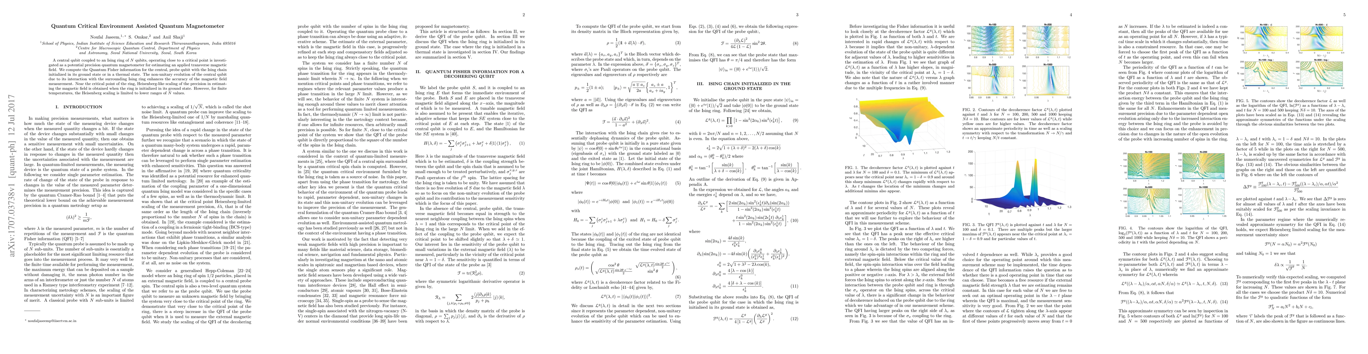 The paper explores a quantum magnetometer using a central qubit coupled to an Ising ring, achieving high-precision magnetic field estimation near the ring's critical point. Initializing the Ising chain in its ground state near criticality results in Heisenberg-scaling for precision, but this is limited to smaller system sizes at finite temperatures.