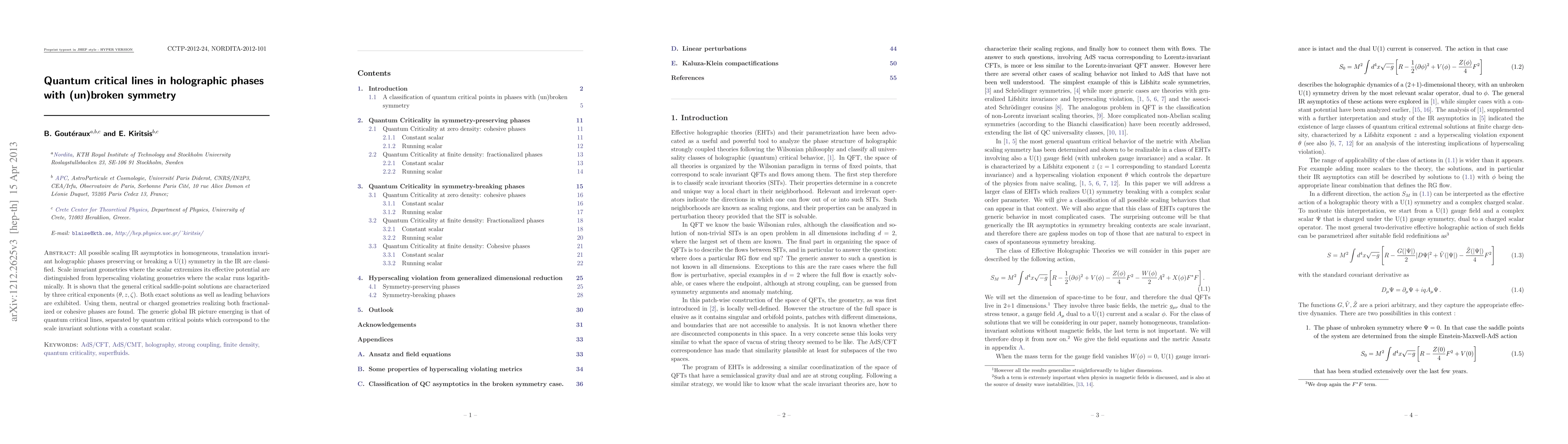 This paper classifies possible scaling IR asymptotics in holographic phases with broken U(1) symmetry, revealing quantum critical lines separated by scale invariant solutions.