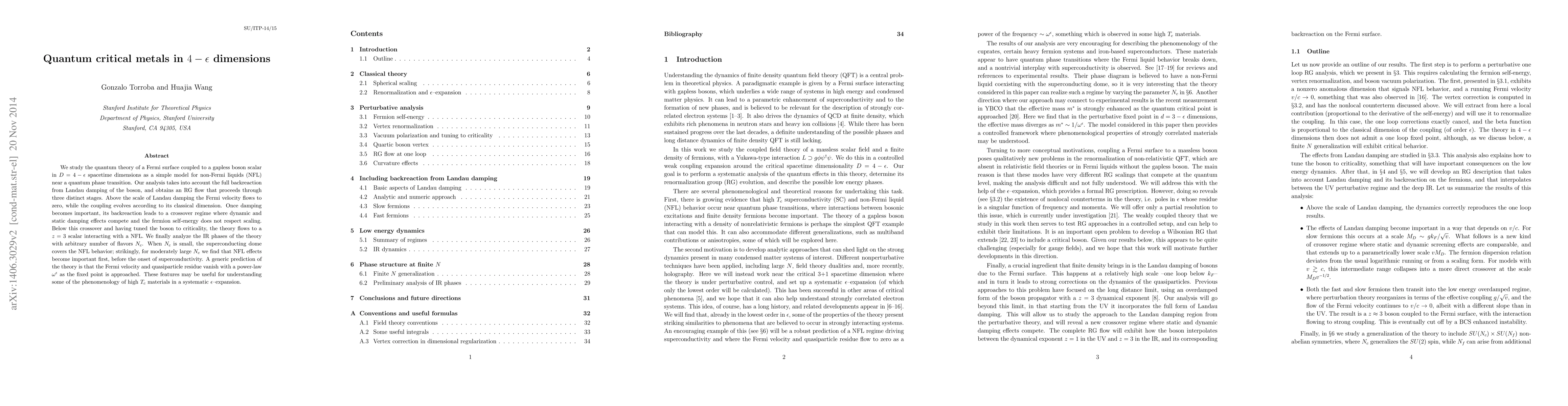 This paper investigates quantum critical metals in $4-\epsilon$ dimensions, focusing on a Fermi surface interacting with a gapless boson to model non-Fermi liquids. It reveals a three-stage RG flow, predicting vanishing Fermi velocity and quasiparticle residue with a power-law $\omega^\epsilon$ near the quantum critical point, potentially explaining high $T_c$ materials' phenomenology.