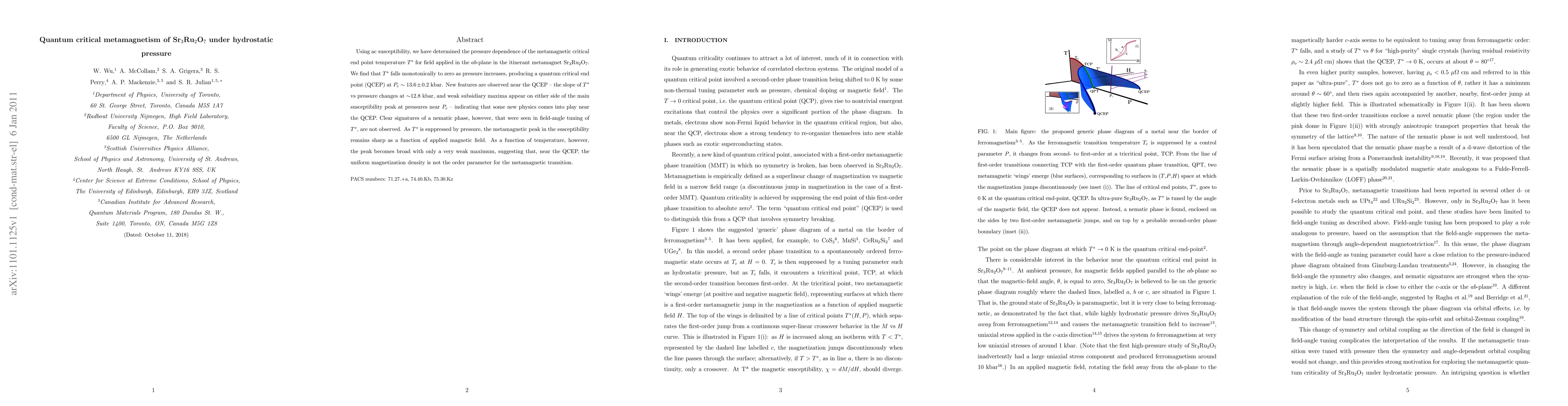 This study investigates the quantum critical metamagnetism in Sr3Ru2O7 under hydrostatic pressure, revealing a quantum critical end point (QCEP) at ~13.6 kbar where T* drops to zero. New phenomena emerge near the QCEP, indicating additional physics, but no nematic phase is observed.