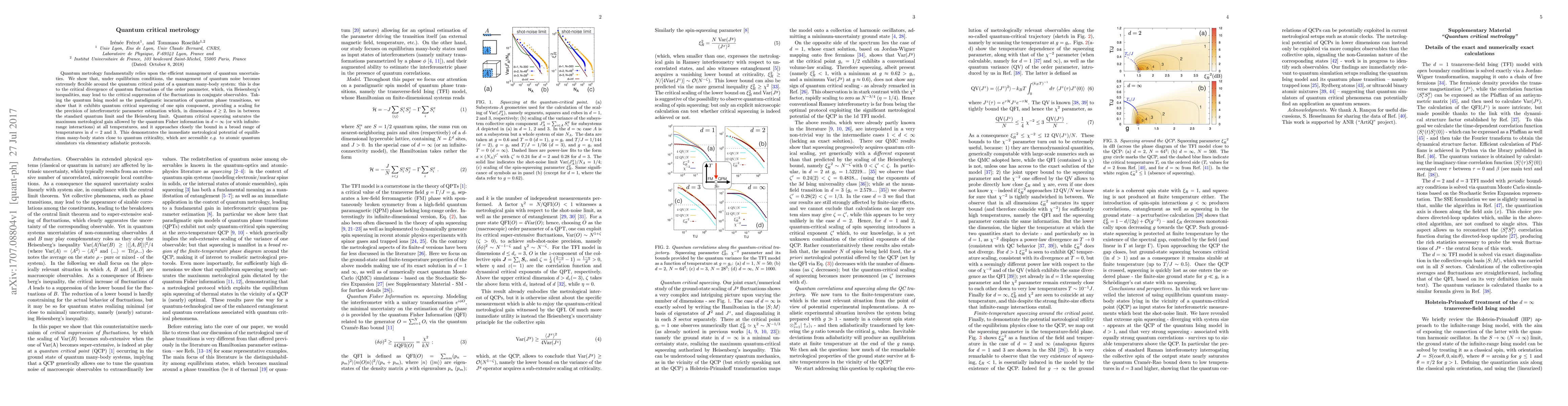 This paper explores quantum critical metrology, demonstrating that quantum noise management becomes highly flexible near the quantum critical point due to critical divergence of quantum fluctuations. The quantum Ising model showcases quantum critical squeezing, offering enhanced precision in interferometric parameter estimation between standard and Heisenberg limits.
